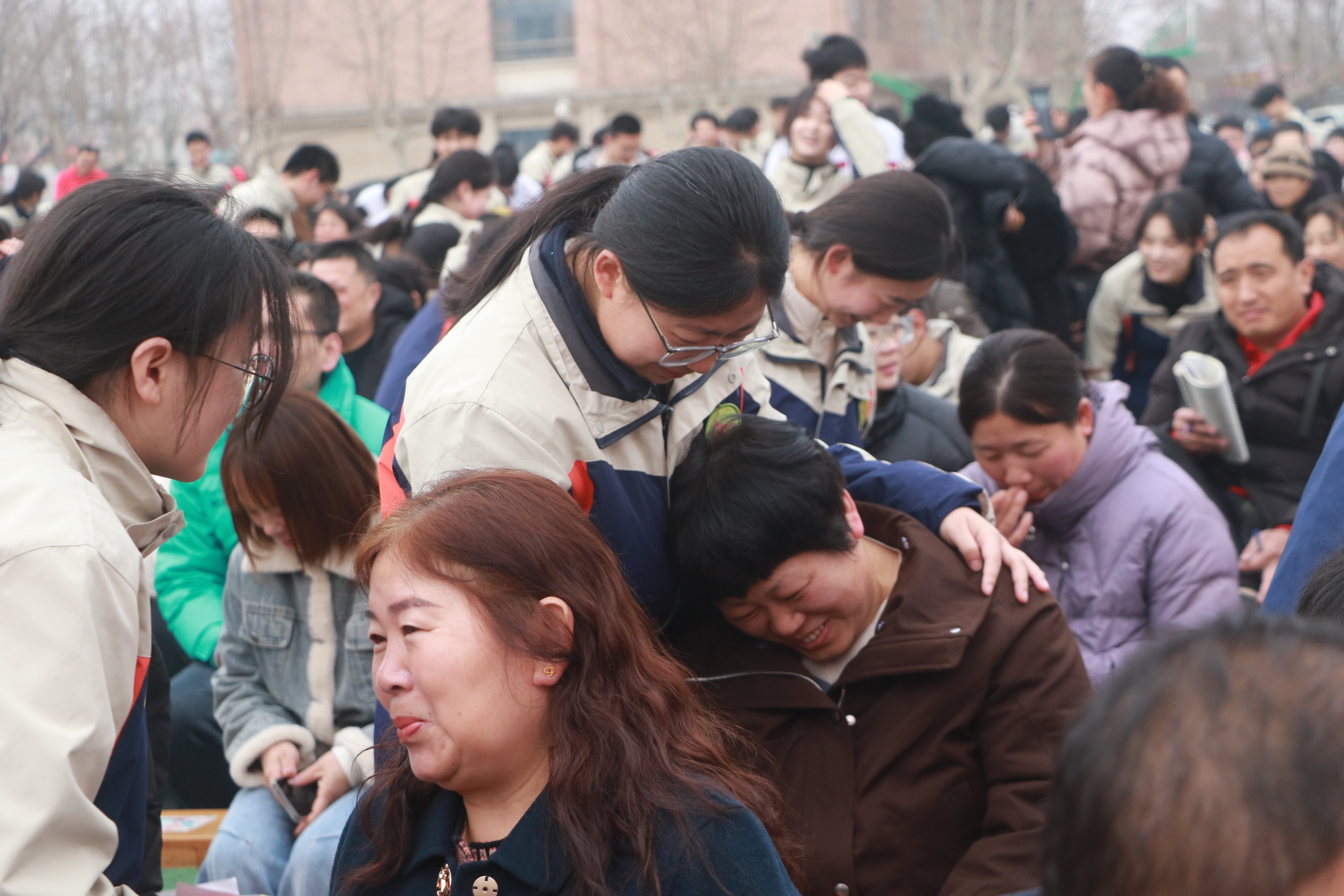 2月27日,在山东省高密市第五中学,高三学生与老师合影留念。