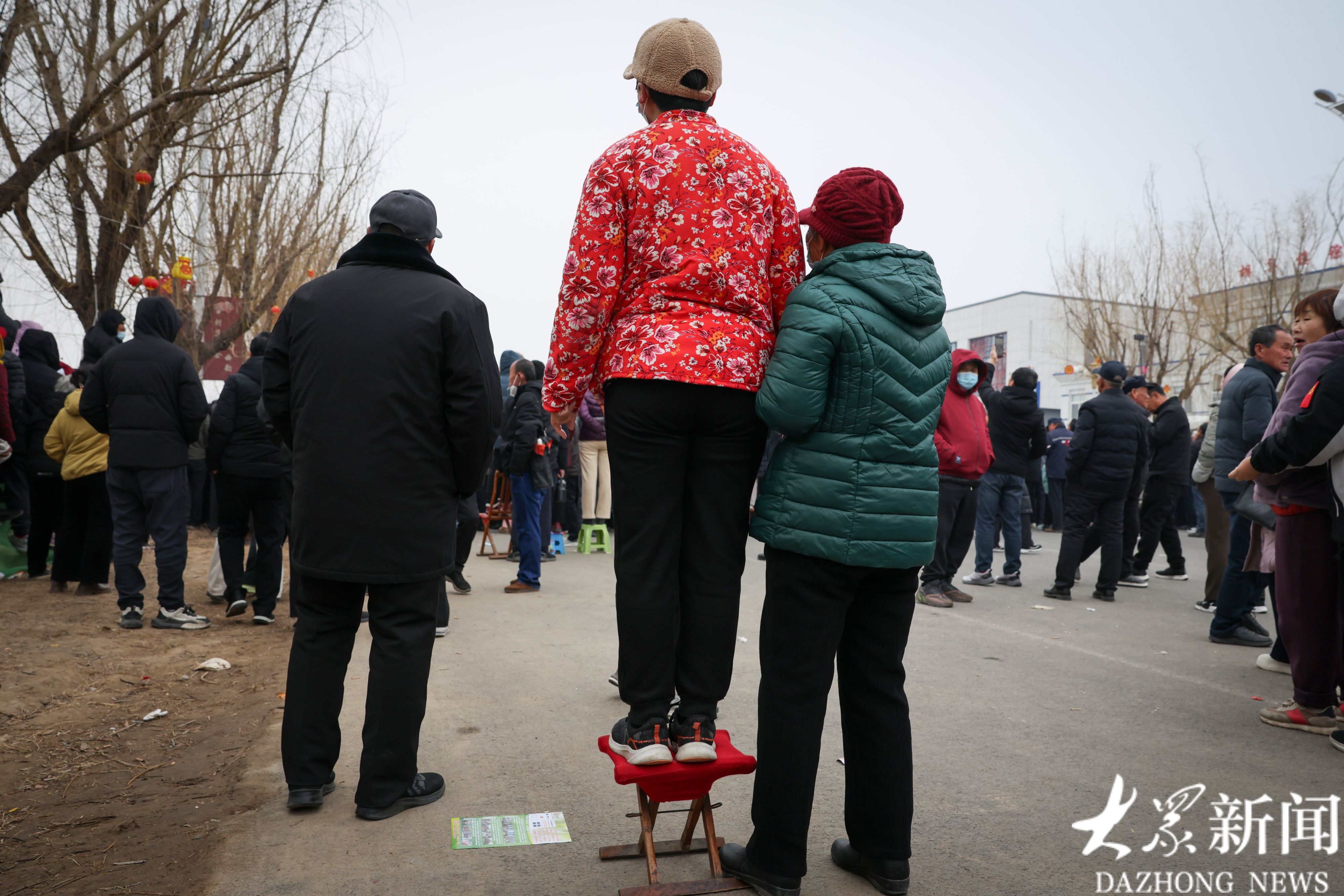 为了听得更清、看得更真,有人干脆踩上了马扎,伸长了脖子,目光紧紧追着台上的艺人。书声响起,他们跟着点头;唱到精彩处,眼里亮得像点了灯;曲终落板,又意犹未尽地鼓着掌,那掌声,比马年的鞭炮声还透着股热乎劲儿。