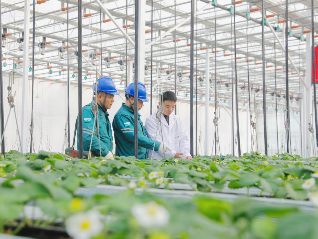图为国网济宁供电公司工作人员到草莓共富产业园排查设备隐患