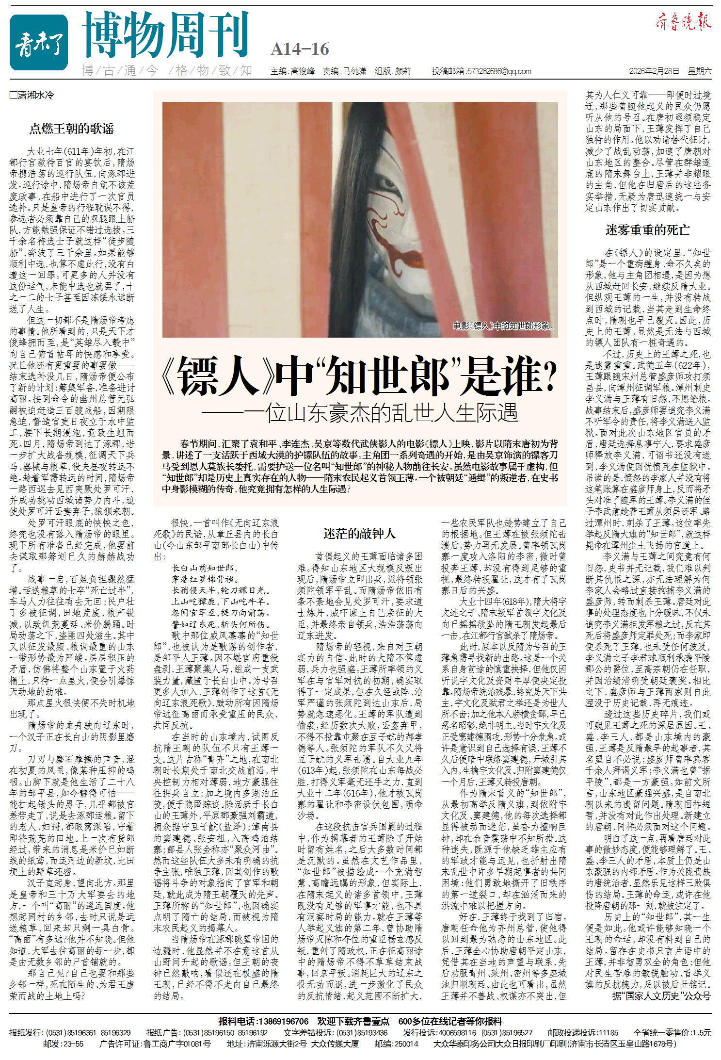 历史上的“知世郎”,其一生便是如此。他或许能够知晓一个王朝的命运,却没有料到自己的结局。留存在史书只言片语中的王薄,并非智勇双全的角色;但他对民生苦难的敏锐触动、首举义旗的反抗魄力,足以被后世铭记。
