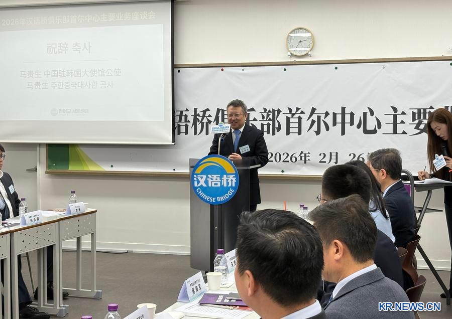 [신화망 서울 2월28일] 한어교(漢語橋) 서울센터 2026년 주요 업무 좌담회가 26일 서울에서 열렸다. 중·한 양국의 교육, 문화 및 기업계 귀빈 50여 명이 자리에 모여 양국 간 교육·문화 교류와 실무 협력에 대해 심도깊은 논의를 진행했다.