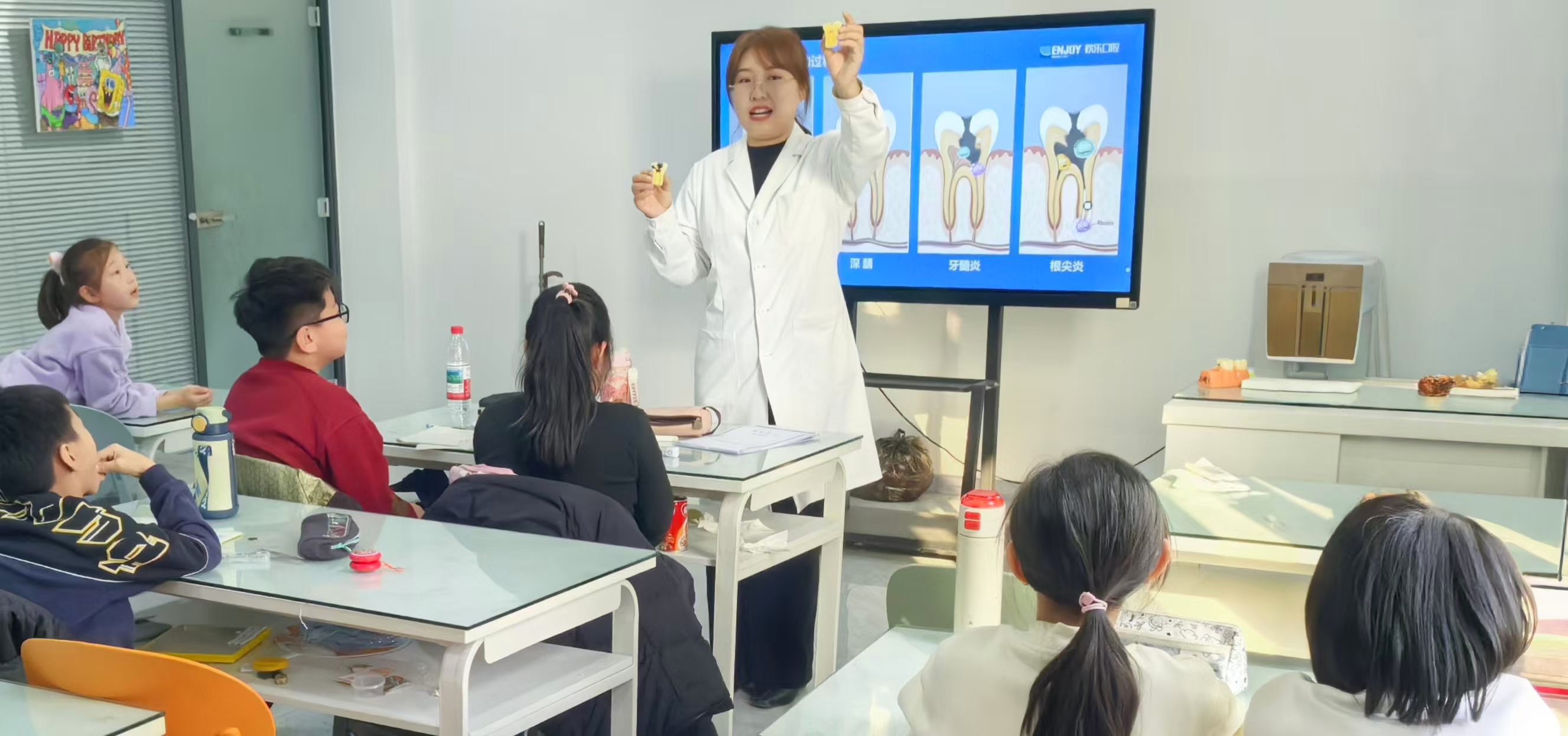 活动中,口腔科普讲师围绕口腔健康基本知识、日常防护要点、不良习惯危害等内容展开细致讲解,用通俗易懂的语言介绍牙齿结构与功能,重点讲解蛀牙、牙齿变形等常见问题的成因与危害,引导孩子们养成早晚刷牙、饭后漱口、少吃甜食的良好习惯。讲师结合生动案例,示范正确刷牙方法,纠正日常口腔护理误区,让护牙知识入脑入心。同时开展免费口腔检查,口腔科普讲师帮助孩子们查看牙齿健康状况,细致排查龋齿、牙列不齐等问题,现场给出个性化护牙建议与诊疗指导,帮助孩子们及时掌握口腔健康情况。