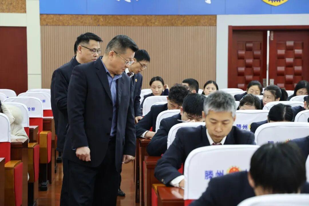 为深入推进检察队伍素质能力提升,检验综合素能提升春训活动成效,2月28日,滕州市人民检察院举办检察人员岗位素能知识测试,以考促学、以考促干,为新一年检察工作提质创优蓄势增能。院党组书记、检察长靖波等领导巡考。