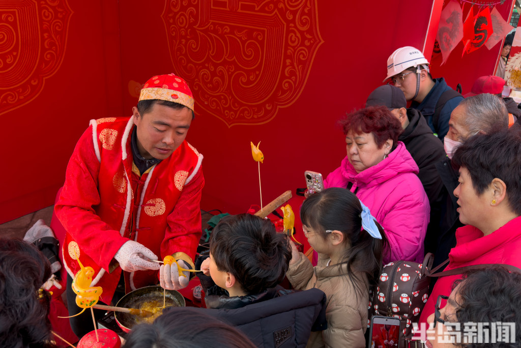 海云庵会场最热闹的区域当属嘉禾路小吃街及糖球广场区域,这里的糖球摊位众多,各色小吃更是琳琅满目,吸引大批市民游客前来体验游玩。