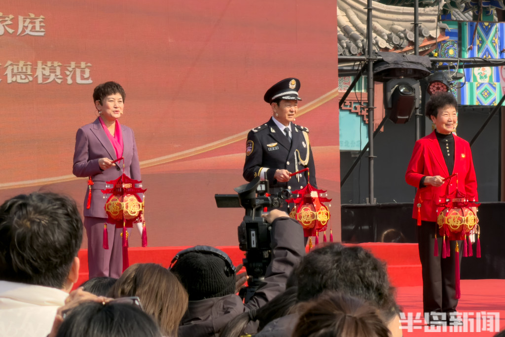 模范美德映文明·灯谜福字暖新春环节邀请岛城模范典型登台与观众互动。