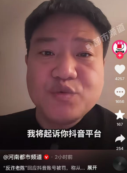 坐拥160万粉丝账号被封,反诈老陈:将起诉抖音平台