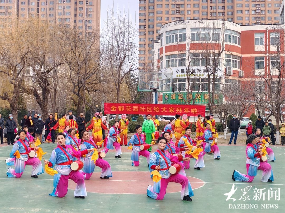 锣鼓喧天辞旧岁,民俗欢腾庆佳节。2月28日,淄博高新区四宝山街道金都花园社区“文化书院里的中国年”之“马跃新春 邻里同乐”扮玩巡游活动在金都花园小区热闹开演,社区扮玩队盛装亮相、载歌载舞,与辖区居民欢聚一堂同享欢乐。