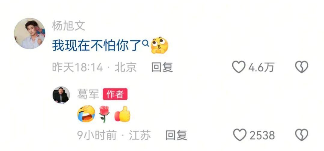 面对葛军的“下场”,网友们纷纷在评论区整活。有网友留言:“以前不认识您,直到江苏2010年高考数学,我考了八十分。”还有已经工作的网友调侃:“我已经上班了,不怕你了”甚至演员杨旭文也现身评论区,留言道:“我现在不怕你了”,引来众多网友围观。