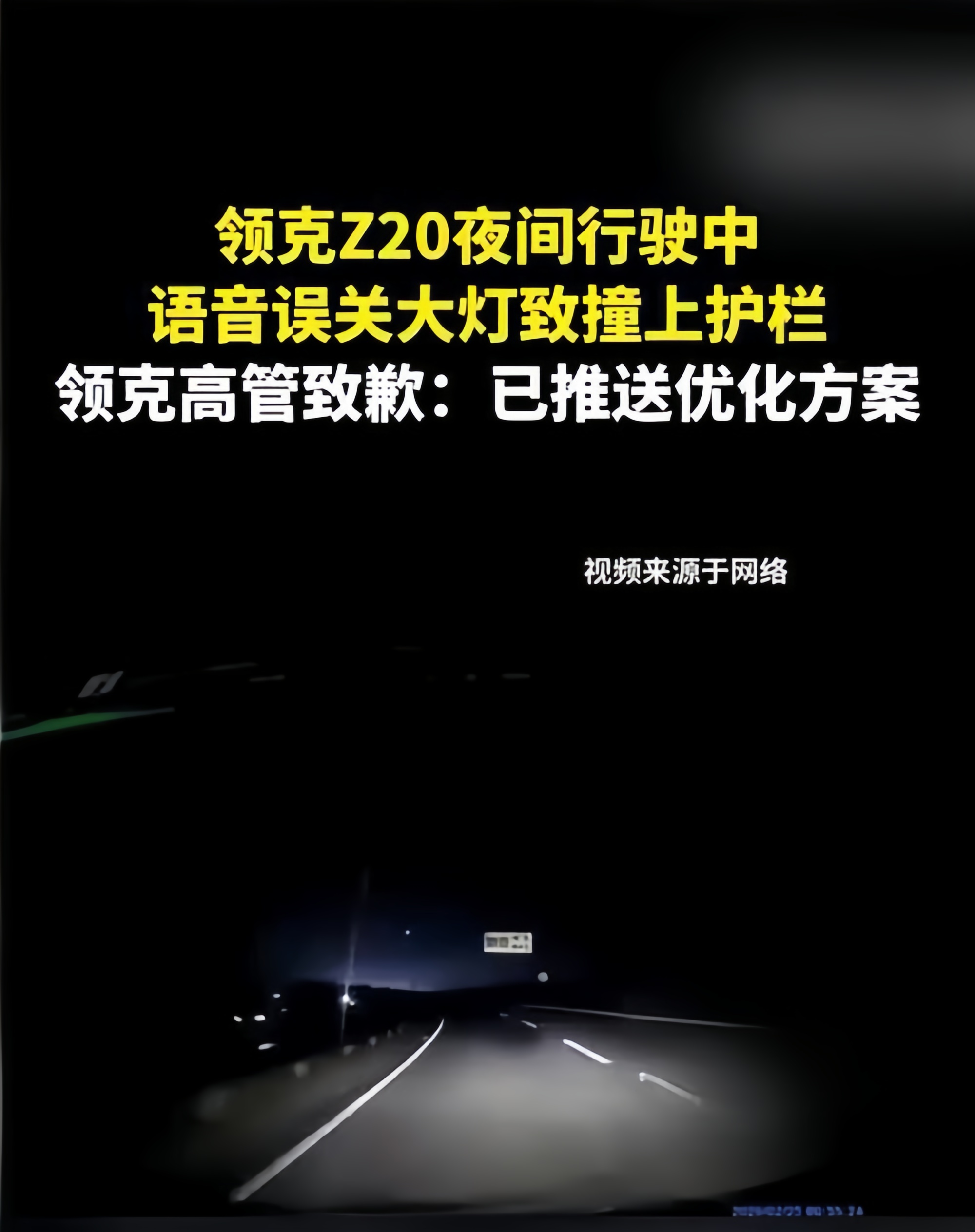 领克Z20语音误关大灯 致车辆失控撞防护栏