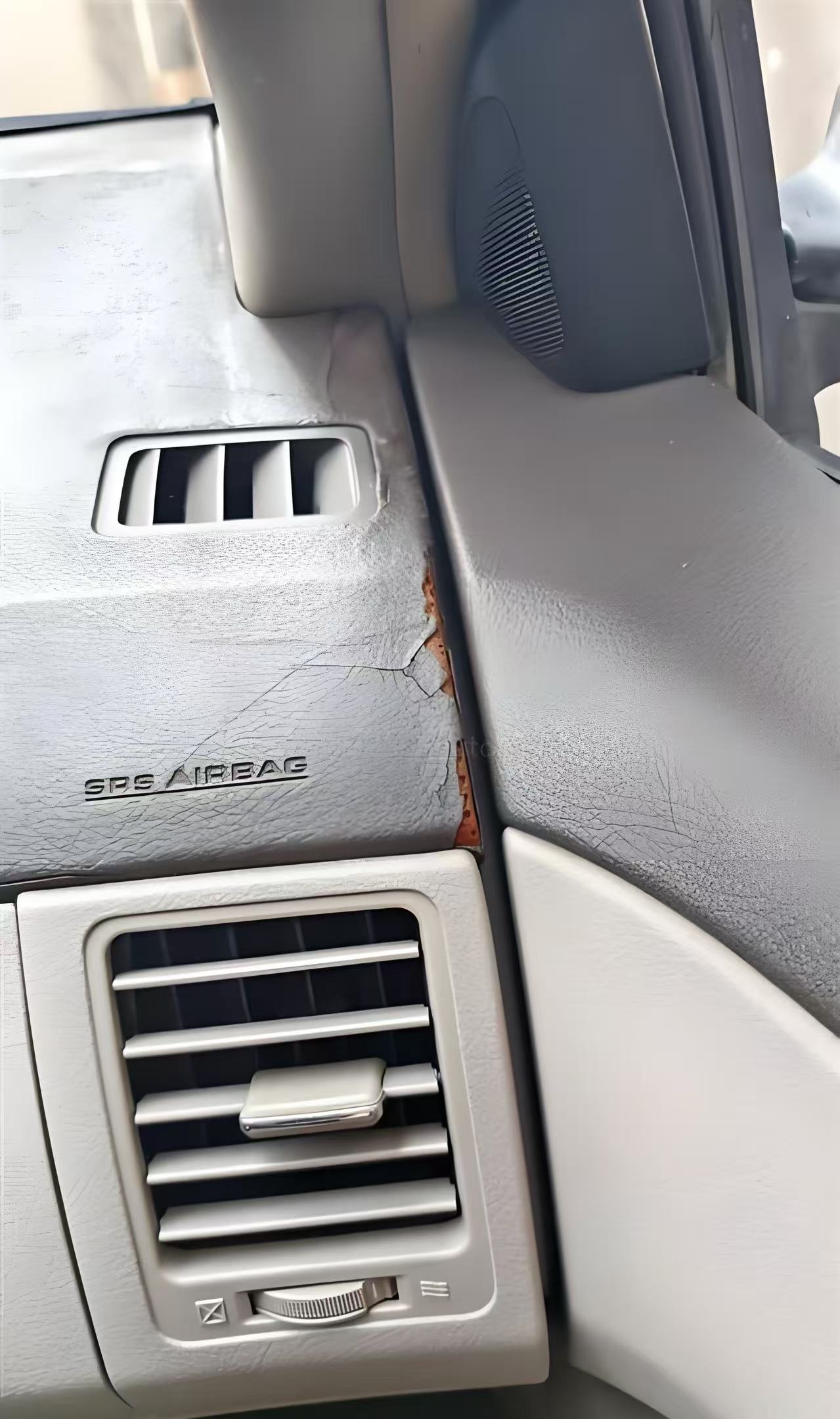 车主反映,车辆仪表台出现大面积开裂、表面出油的现象。深色的塑料材质析出油性物质后,在阳光下会产生强烈的镜面反光,直接投射到前挡风玻璃上,严重干扰驾驶员视线,构成明确的安全隐患。许多车主指出,该问题并非个例,而同年代的凯美瑞、锐志等丰田车型也存在类似通病,怀疑是特定批次的内饰材料存在缺陷。