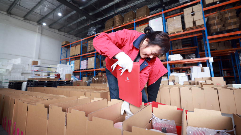 记者在现场看到,仓管员手持智能终端穿梭于货架间,系统自动规划最优拣货路径;打包区内,工作人员熟练地进行贴标、封装,一批批酒品正源源不断发往全国各地。