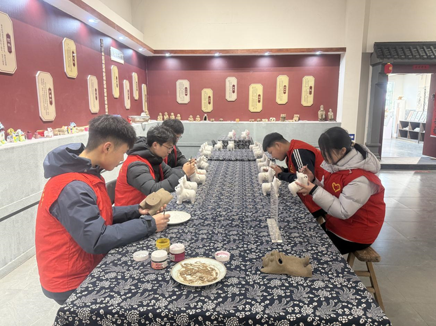 师生们首站探访高密市新成李记木版年画博物馆,沉浸式感受非遗魅力。师生们领略了线条豪放、色彩明快的扑灰年画,还在泥塑展区亲手体验国家级非遗聂家庄“叫虎” 的制作全流程,从选土和泥到修坯彩绘,真切体会到非遗技艺的匠心与智慧。