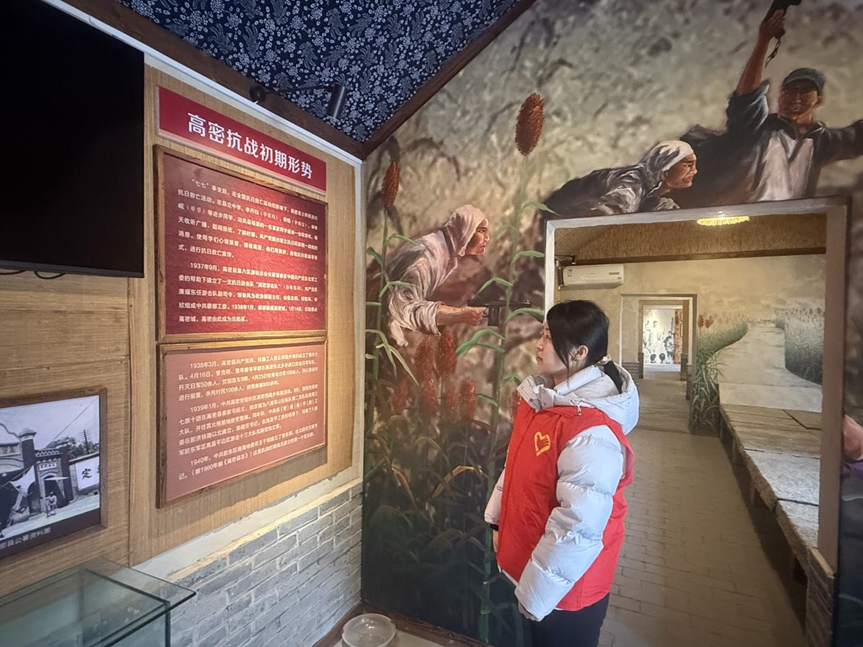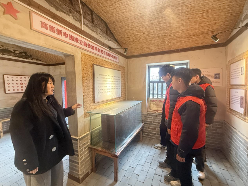 随后,师生们前往王干坝“高北小莫斯科”开展爱国主义教育。在讲解员的引导下,大家了解到这里因抗战时期群众基础扎实、革命氛围浓厚,成为高密北部抗日根据地核心,故而得名。讲解员深情讲述了革命先辈艰苦斗争、百姓倾力支前、青年战士舍生取义的红色故事,搭配珍贵的历史照片,让师生仿佛置身战火年代,内心受到深刻的红色洗礼。参观中师生认真聆听、驻足凝视,备受触动。