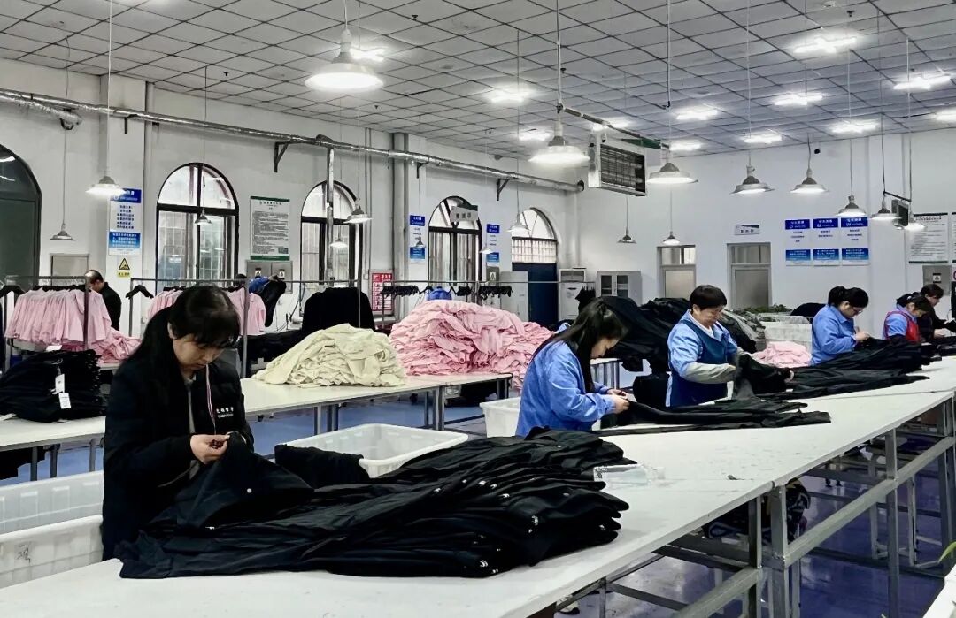 如今,冬奥荣光正转化为推动企业发展的强劲动力。走进威海允祯的生产车间,一派繁忙景象:自动裁床高速运转,成批布料被精准裁剪;智能化吊挂流水线井然有序,将打版、缝制、整理等环节无缝衔接,车间员工各司其职、干劲十足,全力赶制各类订单。