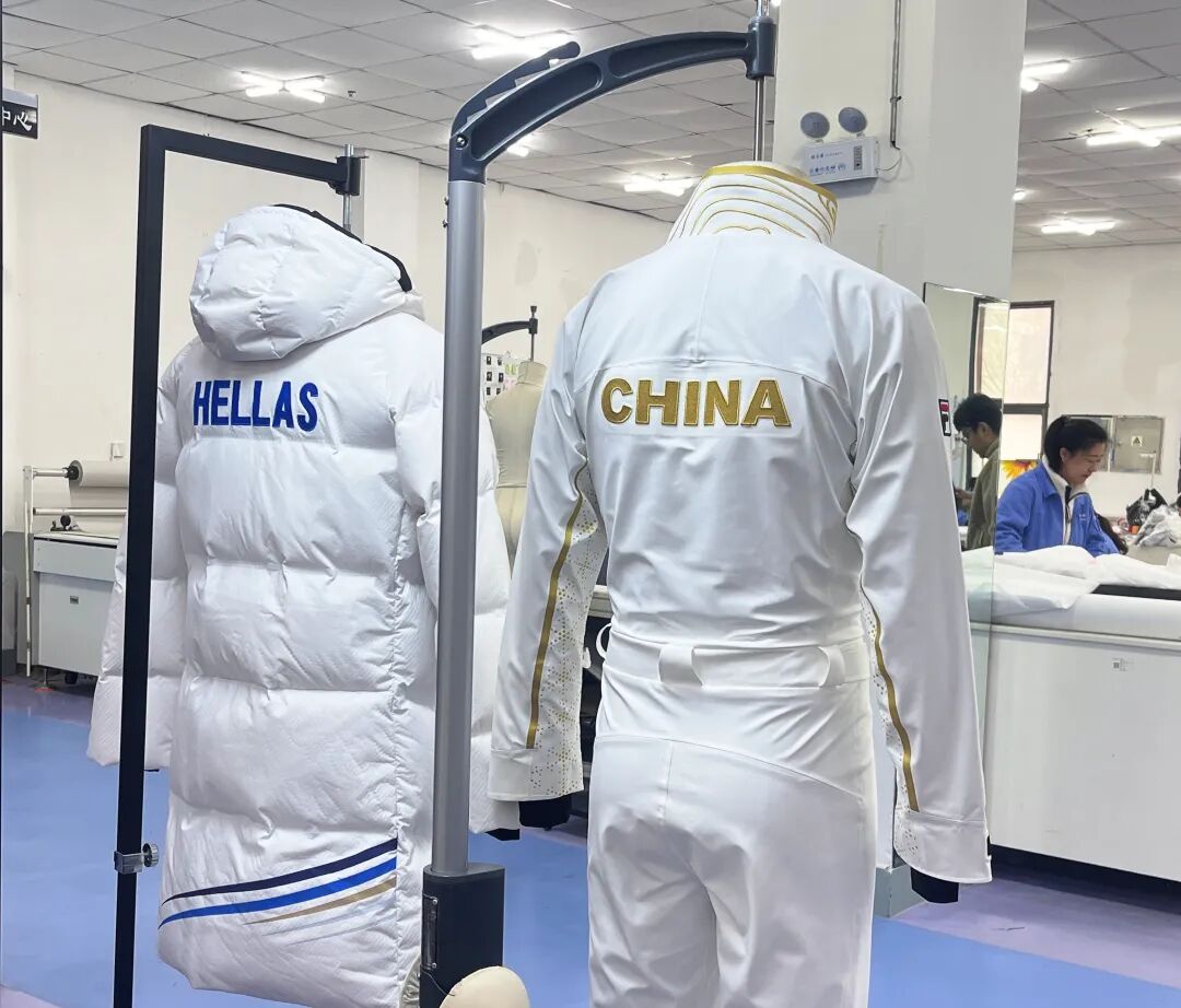 这种近乎苛刻的执着,源于威海允祯作为安踏集团核心供应商的深厚底蕴。从2018年平昌冬奥会志愿者服装,到2022年北京冬奥会全套服饰装备,再到本届米兰冬奥会希腊代表团出场服及中国自由式滑雪空中技巧队战袍,“环翠造”的身影始终陪伴着运动员登上最高领奖台。