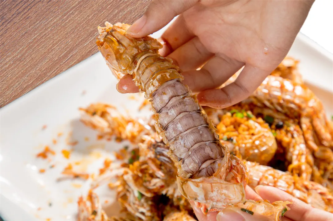 【一捏】捏虾尾,优质的爬虾虾尾捏起来有厚实的质感。