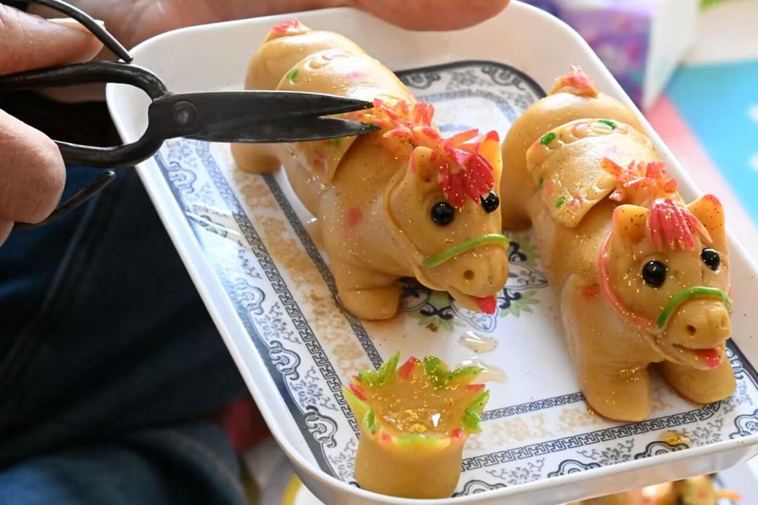 春节已过,元宵节将至。在即墨区田横镇一带,渔家人用黄豆面捏灯庆元宵的习俗已传承600余年。2月28日,宋玉芳盘腿坐于炕头,手中的豆面团仿佛有了生命,揉搓间便有了雏形。她用牙签、梳子、剪刀等简单工具局部加工,不一会儿,栩栩如生的动物造型便一气呵成。