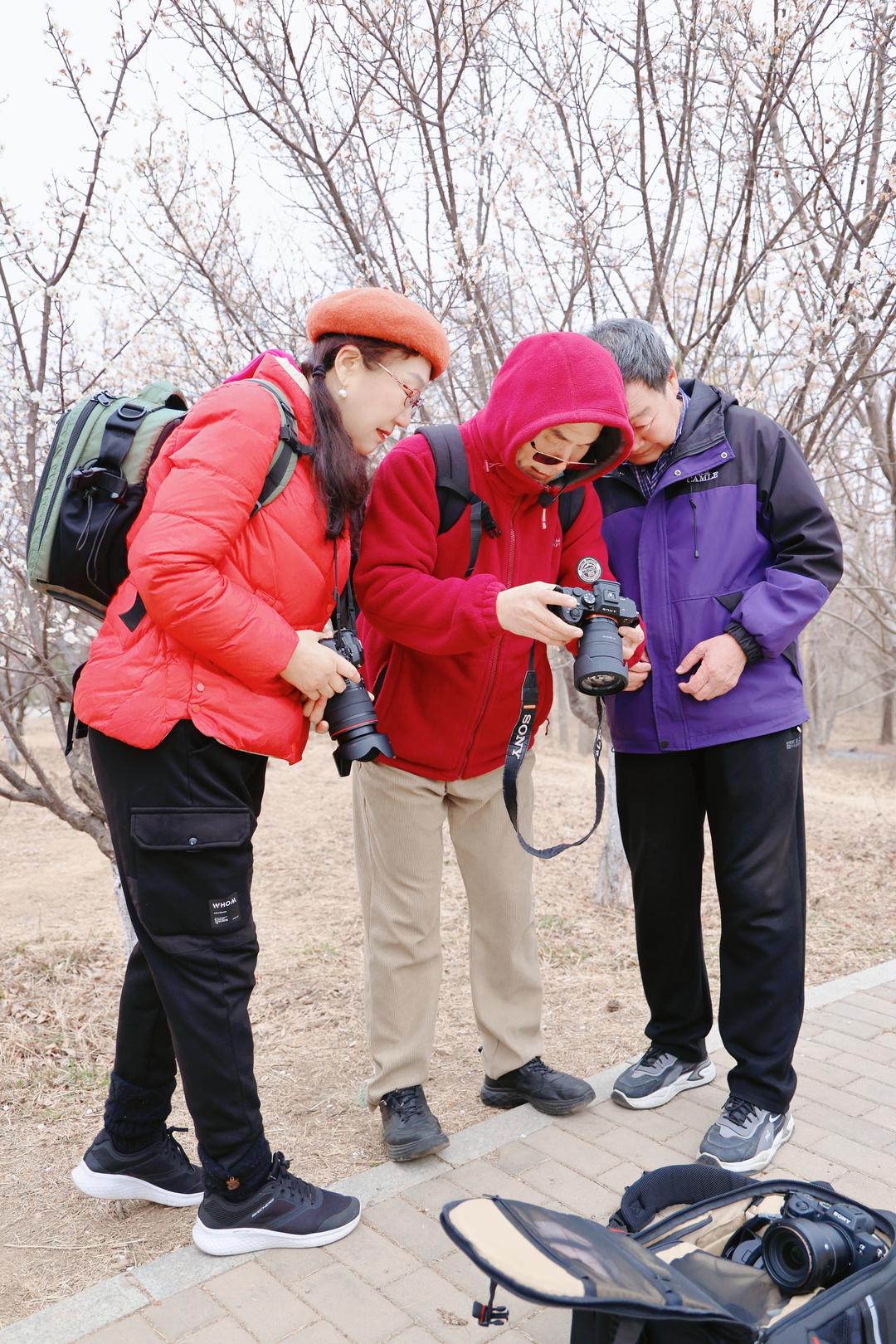 牛家庭聚焦梅花拍摄核心技巧,现场手把手精准指导,细致拆解构图、调焦、光影捕捉等要点,详解如何凸显梅花的清雅姿态与独特韵味,耐心回应学员拍摄中的各类难题。学员们认真聆听、实操演练,时而驻足凝思构图,时而切磋交流心得,时而分享定格的精彩瞬间,梅林间暖意融融、笑语盈盈,尽显新时代银龄学员的求知热忱与昂扬风采。