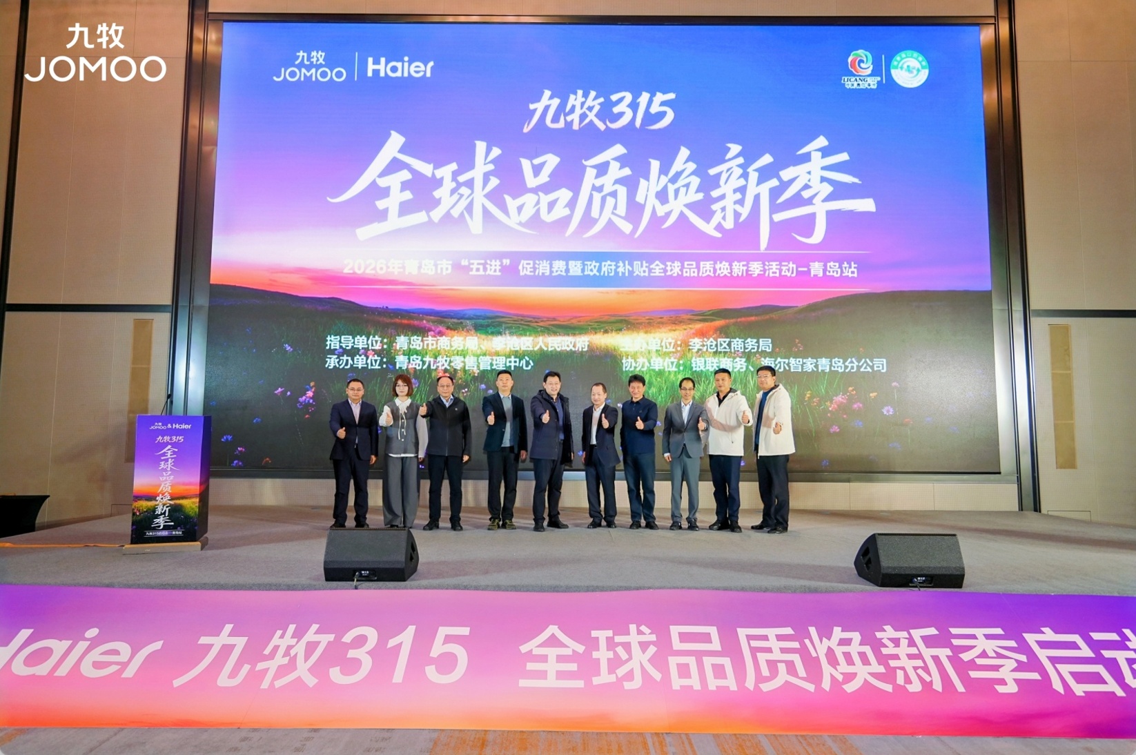 随后,与会嘉宾共同登台,在全场倒计时中完成启动仪式,标志着“青岛市2026年以旧换新“五进”系列活动暨九牧&海尔315全球品质焕新季”活动正式拉开帷幕。