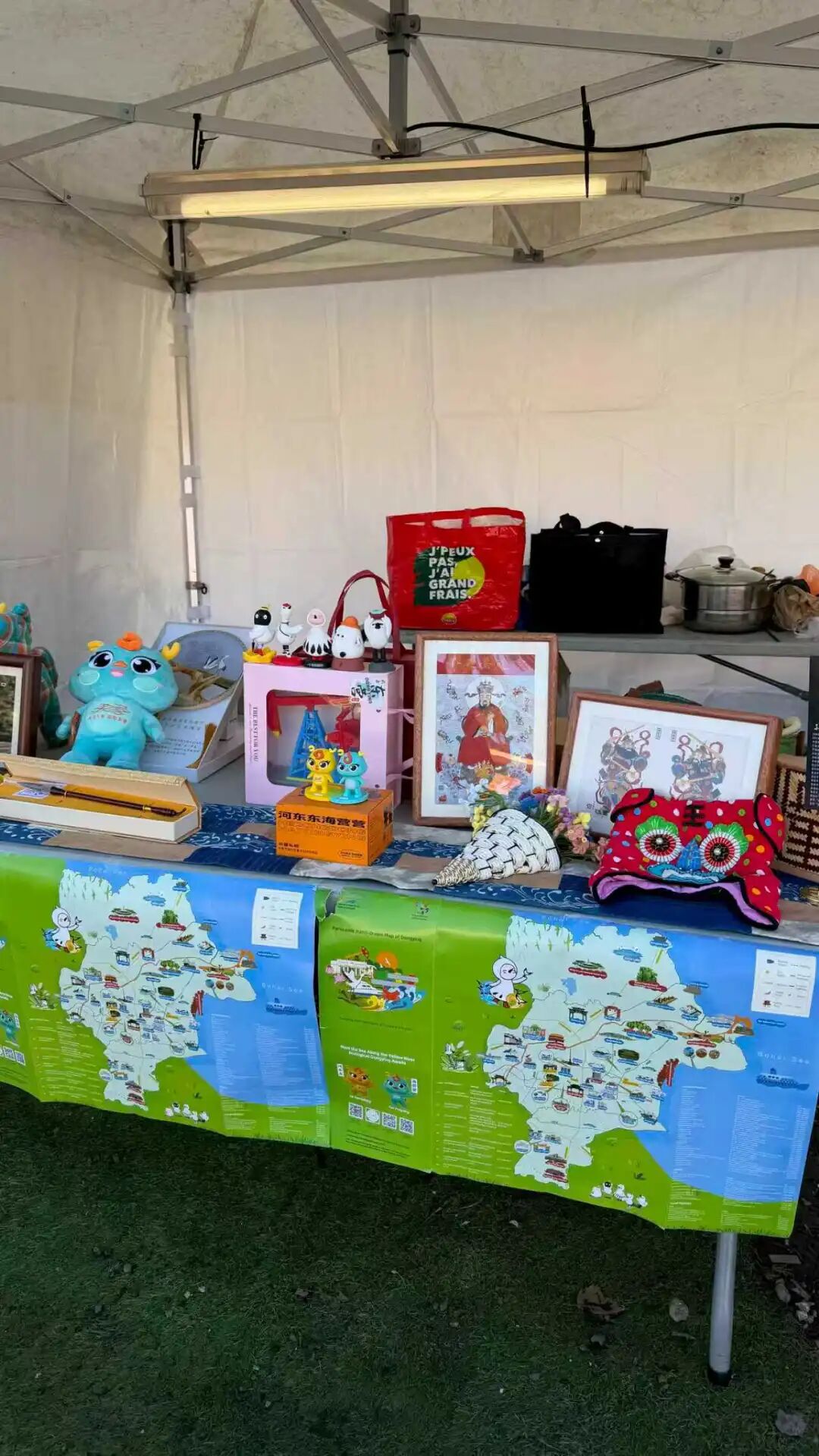 精美的芦苇画、马元素的刘氏布偶、广饶齐笔等非遗产品将黄河口的自然风光定格于方寸之间;“小鸟的朋友”生态天团、磕头机摇摇乐、“河东东海营营”等年轻创意的文创产品,讲述着东营这座年轻城市的活力与故事……每一件展品都像一位“文化使者”,向法国朋友展示着东营的城市特色与文化底蕴。