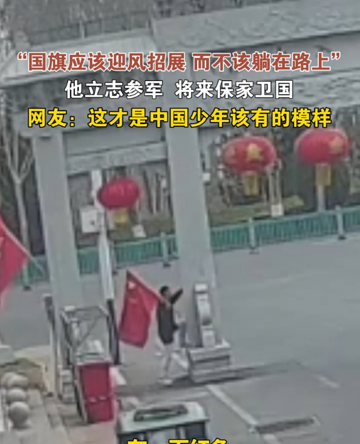 “没多想。”他说,“看到国旗掉地上,捡起来挂好。在学校升旗的时候老师讲过,国旗代表国家。挂好了,就想敬个礼。”
