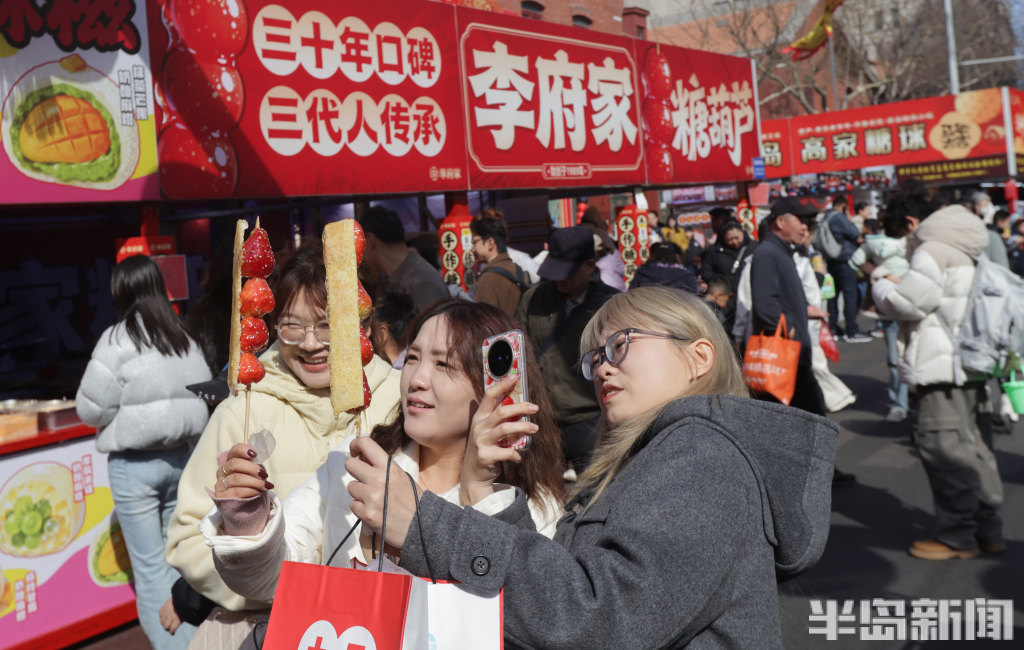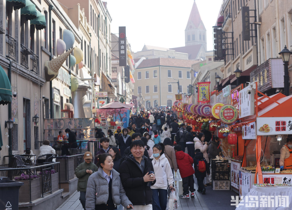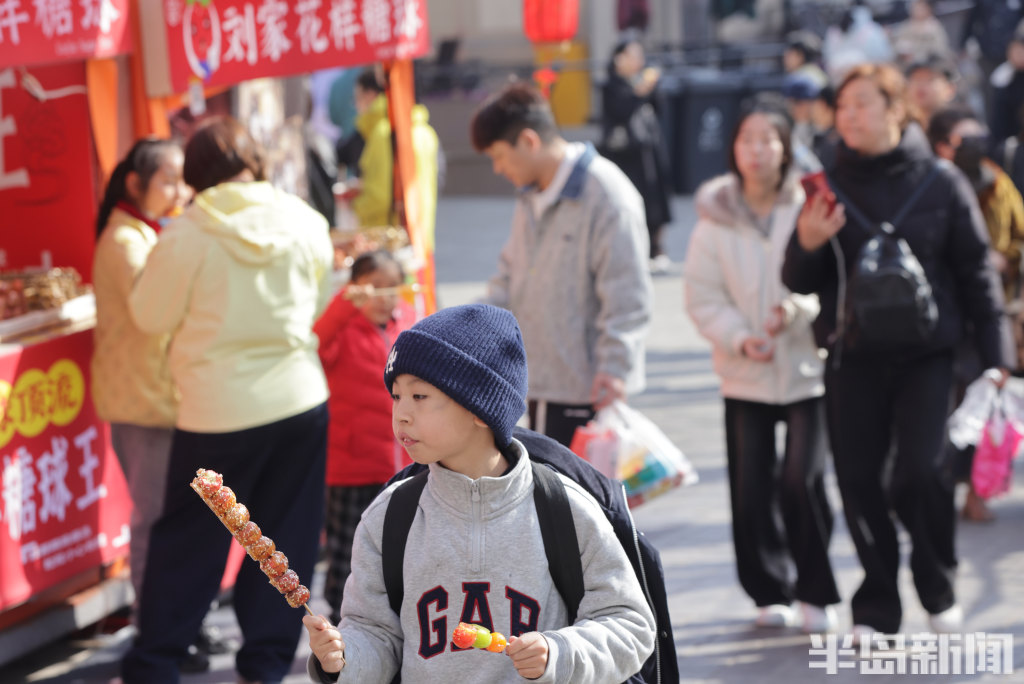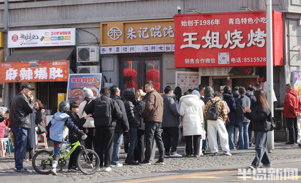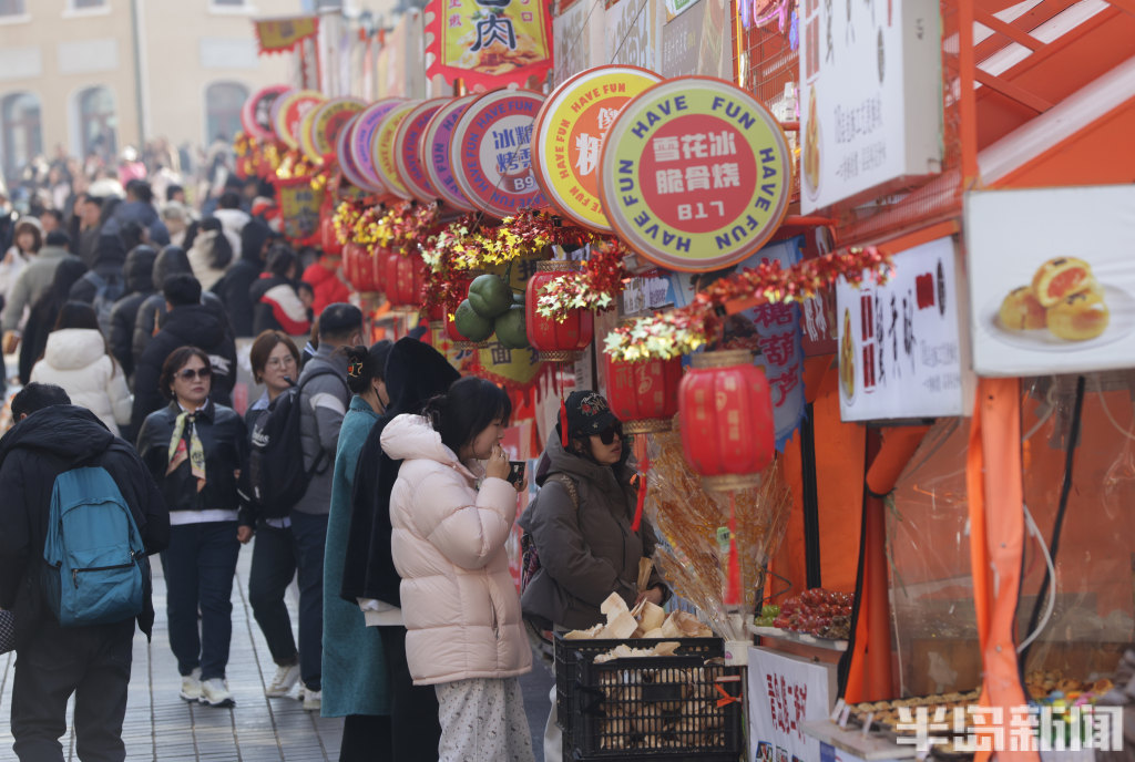 2月28日,春节假期虽已落幕,青岛中山路的热度依旧不减。沿街喜庆的新春装饰持续“吸睛”,引得市民游客纷纷驻足打卡,老字号小吃店门前更是排起长龙。与此同时,大鲍岛、四方路等片区的美食摊位生意红火,飘香的美味让众多游人慕名而来、流连忘返。(半岛全媒体记者何毅)