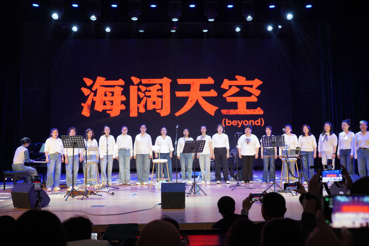 当演出步入尾声,活动也迎来高光时刻。淄博市文化馆青年女声合唱团倾情加盟,与八零轨迹乐队及全场观众共同唱响《海阔天空》,现场观众全体起立,打开手机手电筒,点点星光汇成海洋,乐队与观众伴着黄家驹原唱齐声高歌,熟悉的旋律响彻星光剧场,理想、自由与永不言弃的精神在歌声中传递,将现场氛围推向顶峰,这一幕也成为当晚最温暖的记忆。