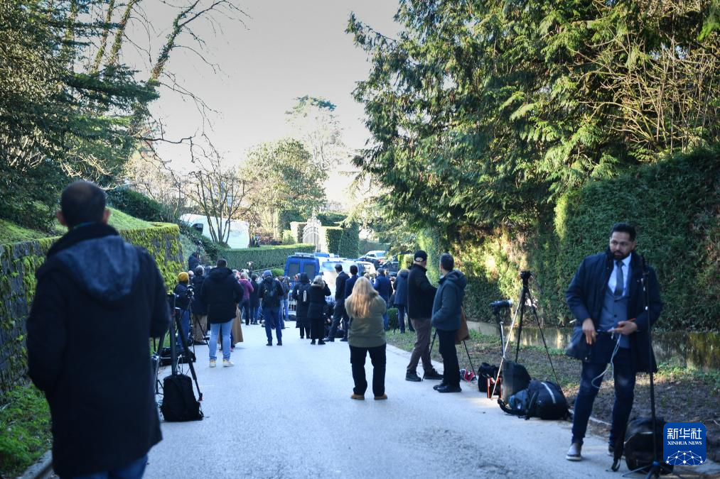 26日,伊美第三轮间接谈判在日内瓦举行,记者在阿曼驻日内瓦外交代表机构附近等待。