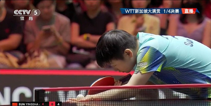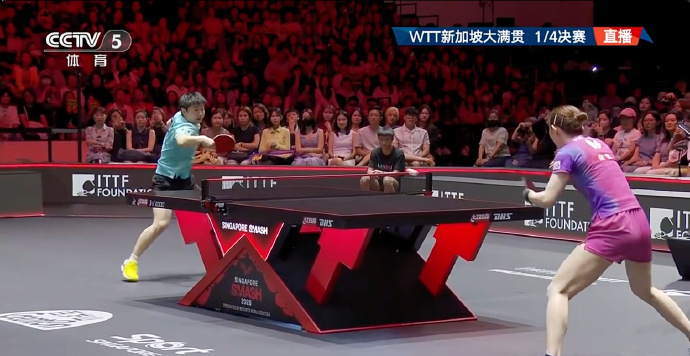 WTT新加坡大满贯女单1/4决赛,孙颖莎顶住早田希娜的冲击,以4-2取胜,晋级四强。
