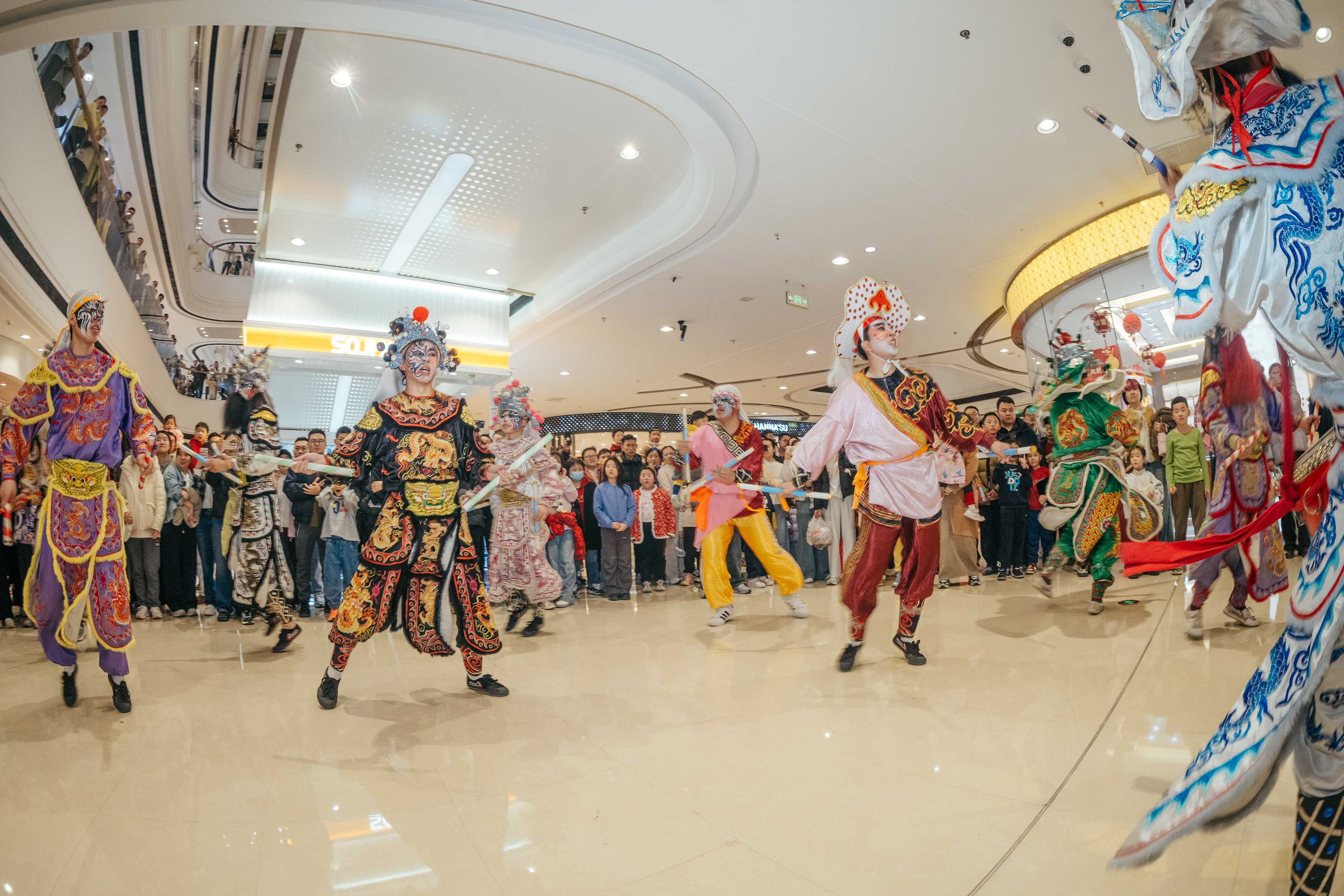 春节期间,广场每日推出一场大型民俗活动,以铿锵鼓点拉开新春序幕,用非遗演艺点燃城市年味。