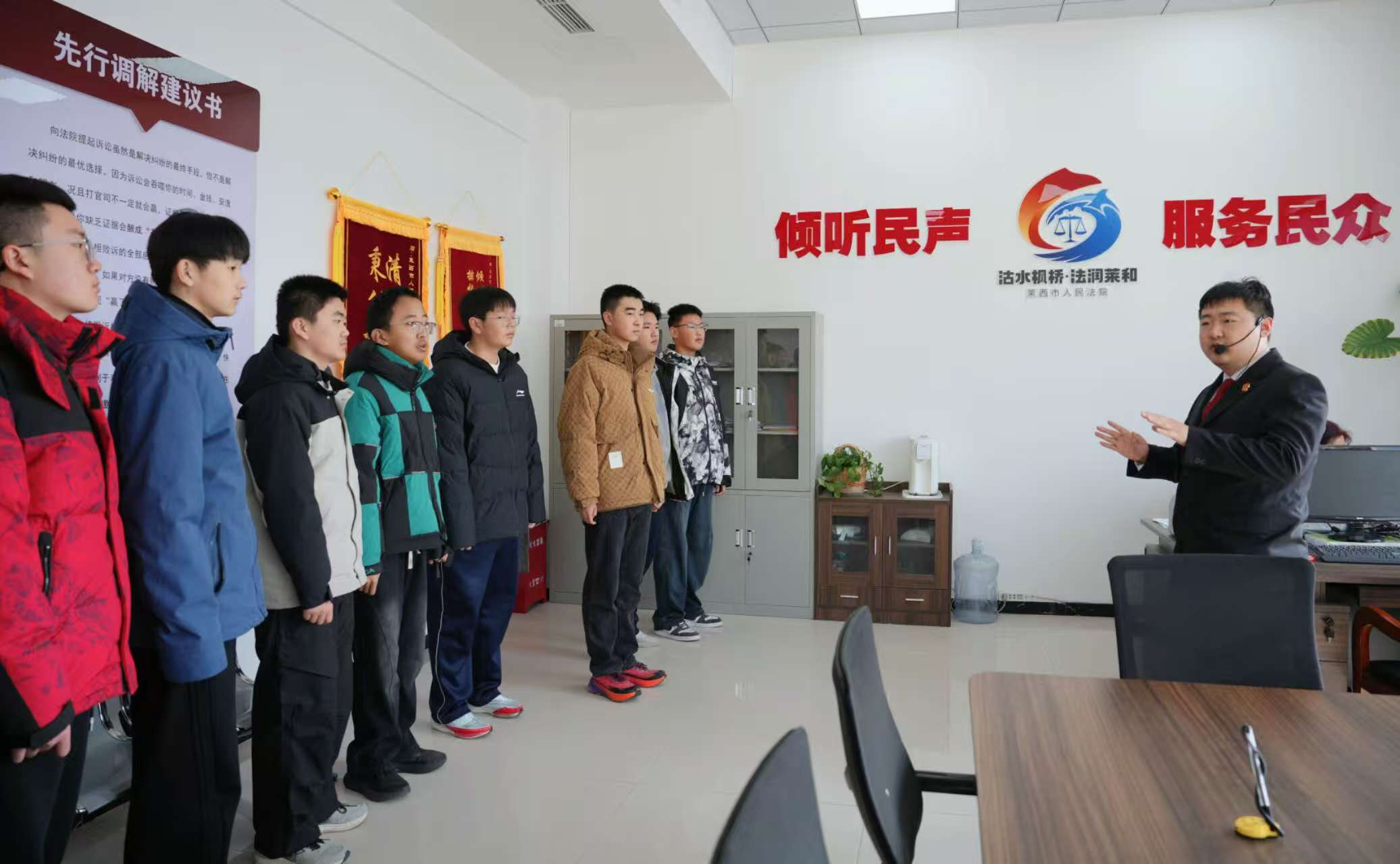 随后,同学们走进夏格庄法庭(少年法庭),依次参观调解室、圆桌审判庭、安检室、家庭教育指导工作室等场所。每到一处,法院干警都以通俗易懂的语言讲解各个区域功能和其在审判工作中的重要作用,让同学们对法院工作有了更直观、更真切的了解。