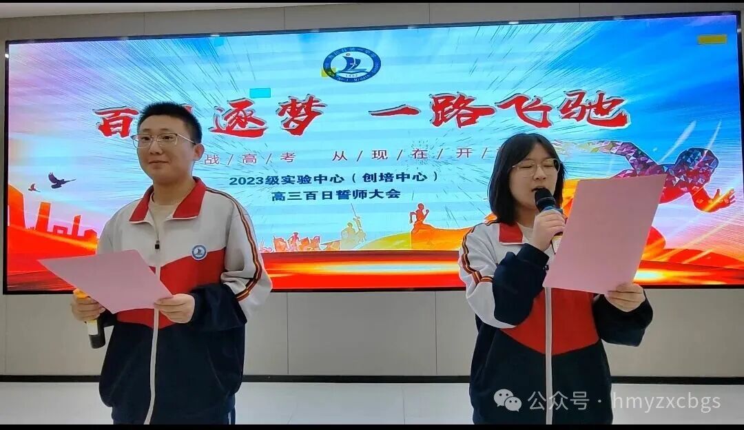 副校长周军在实验中心分会场上发表讲话。他以身边的具体事例为证,鼓励同学们永不放弃。他号召,在最后的一百天里,同学们要以史为镜校准方向、以梦为马分秒必争、以爱为帆乘风破浪。他代表全体教师宣誓:“用十年磨一剑的耐心,助你们百日破千关!”