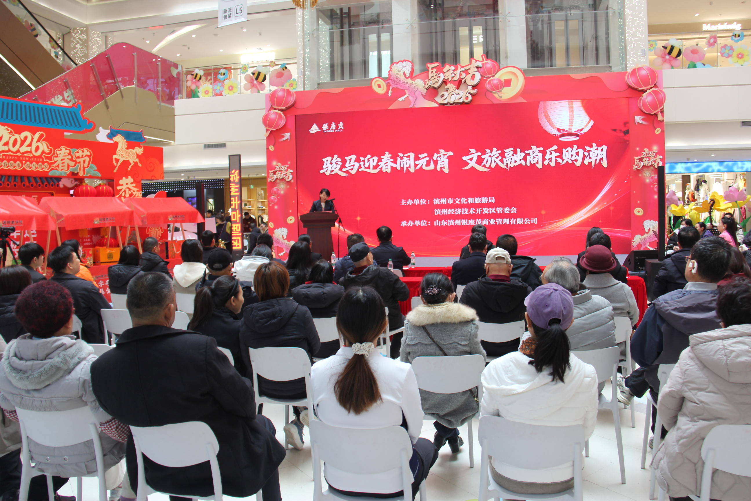 本次活动由滨州市文化和旅游局、滨州经济技术开发区管委会主办,滨州银座茂承办,以马年元宵为主题,以文促旅、以旅兴商、以商惠民,策划开展系列文化展演、非遗体验与消费促进活动。弘扬中华优秀传统文化,丰富市民节日精神文化生活,激发文旅消费潜力。