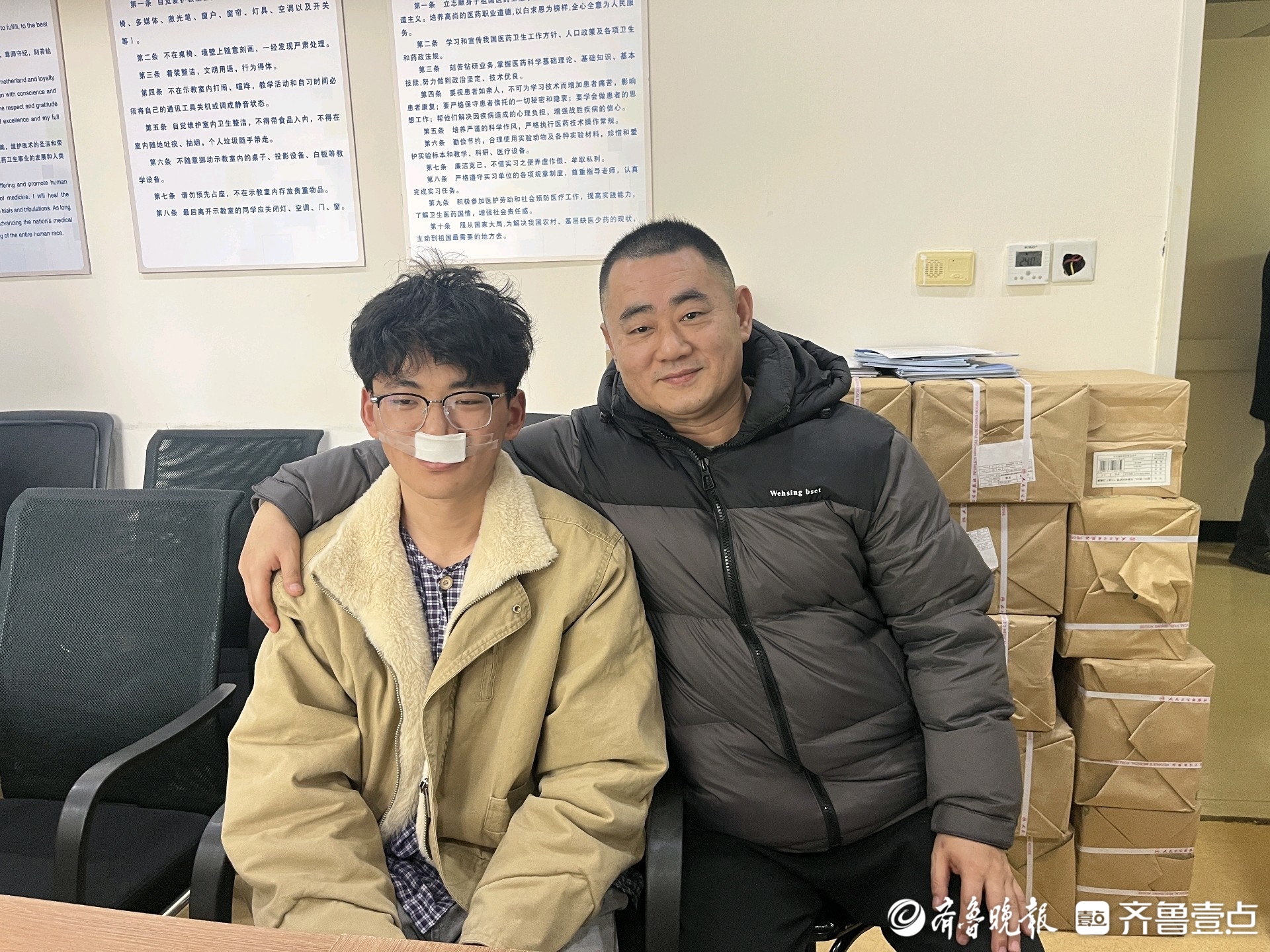 2月28日,正月十二,成宝手术后第三天,他出院了。上午,张奎杰因为工作没能接他出院。成宝便和从邹城一早赶来的张文莉一起,办完了出院手续。随后,他们带着锦旗,来到了张奎杰的工作地。