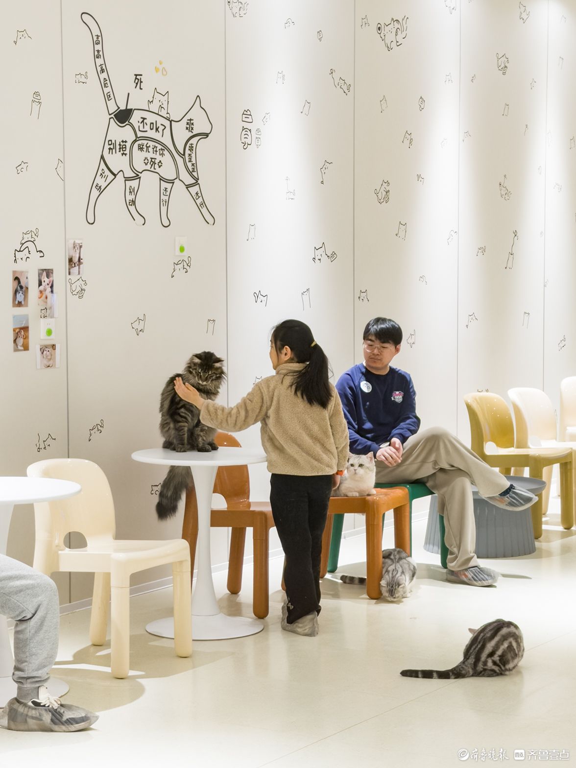 正月初七,济南领秀城贵和购物中心糯米喵星人馆内,市民与猫咪温馨互动,享受轻松惬意的休闲时光。