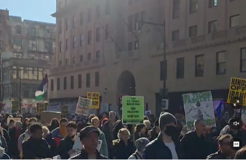 纽约时代广场当天发生反战集会,抗议美以联合对伊朗发动军事打击
