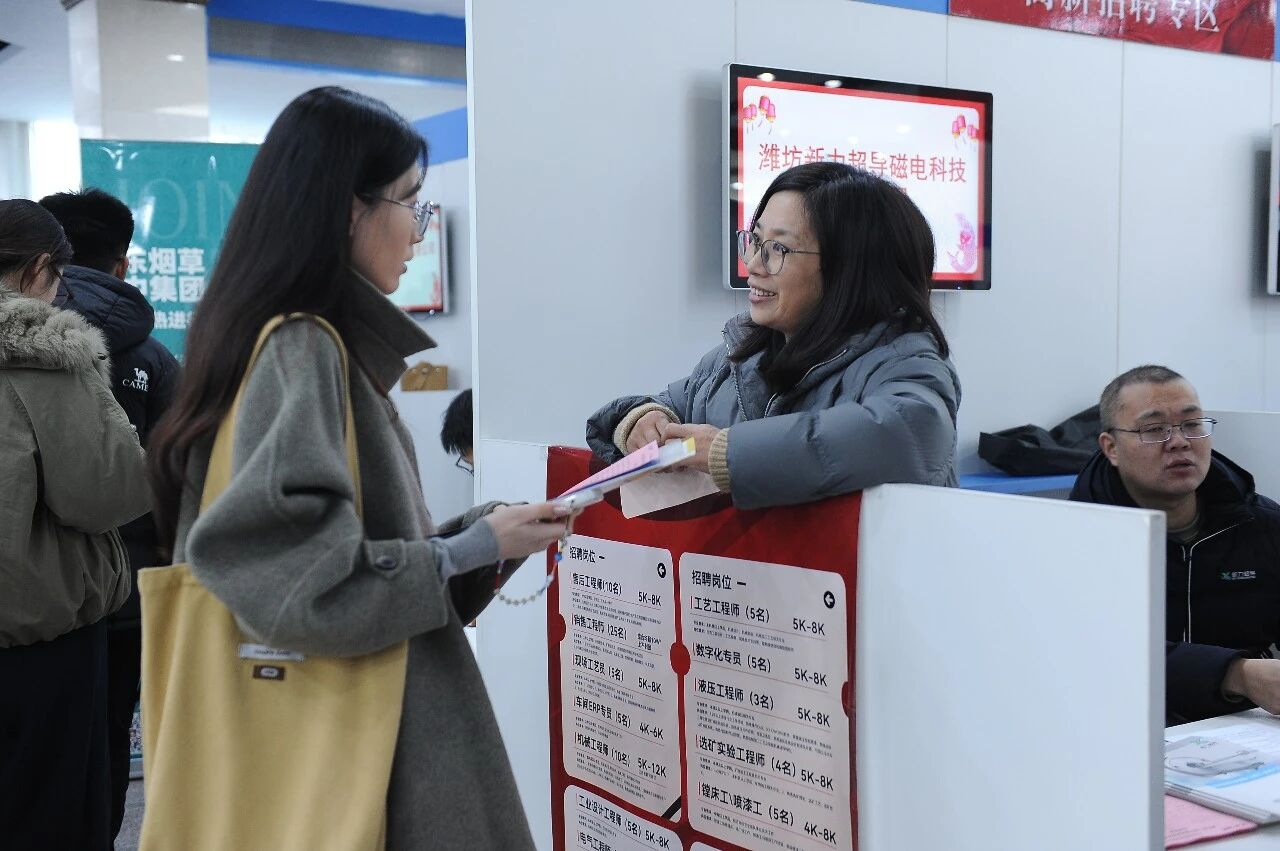 歌尔股份、豪迈集团、潍柴雷沃等本地大企业招牌格外醒目。歌尔计划招聘1500名一线技工,给出条件相当干脆:今天面试、明天培训、后天进车间。一位招聘工作人员表示:“订单不等人,用工很紧急,有五险一金,我们更看重稳定性。”