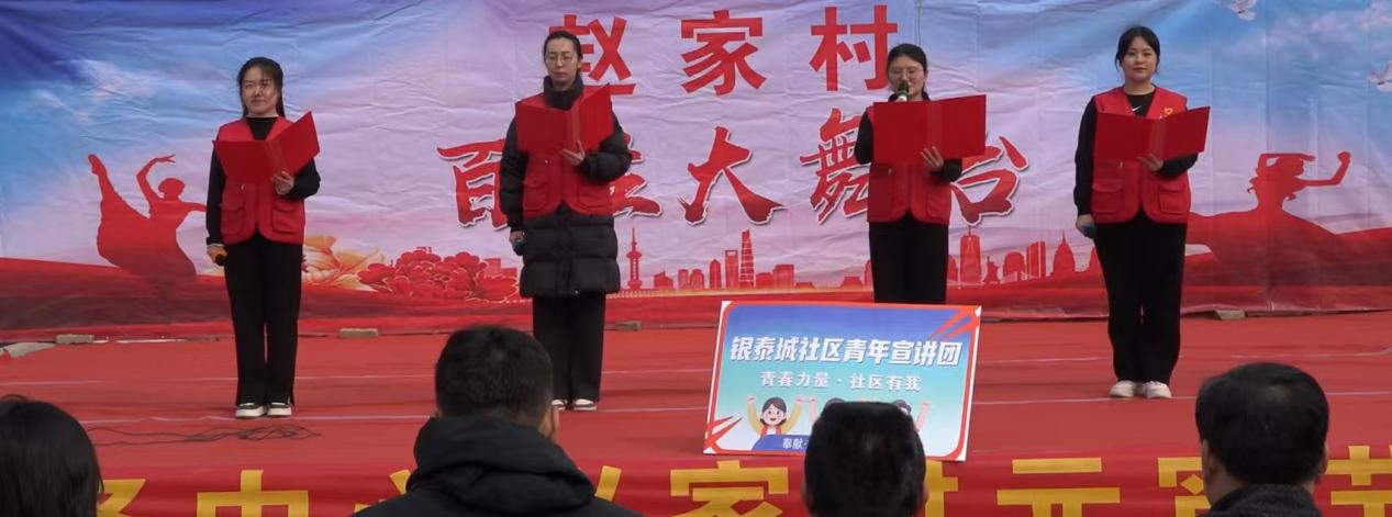 来自四宝山街道银泰城社区青年宣讲团带来原创诗歌朗诵《春到赵家村 青春话振兴》,青年们声情并茂,讲述乡村振兴带来的崭新变化,抒发投身家乡建设的青春理想,打动了在场每一位观众。