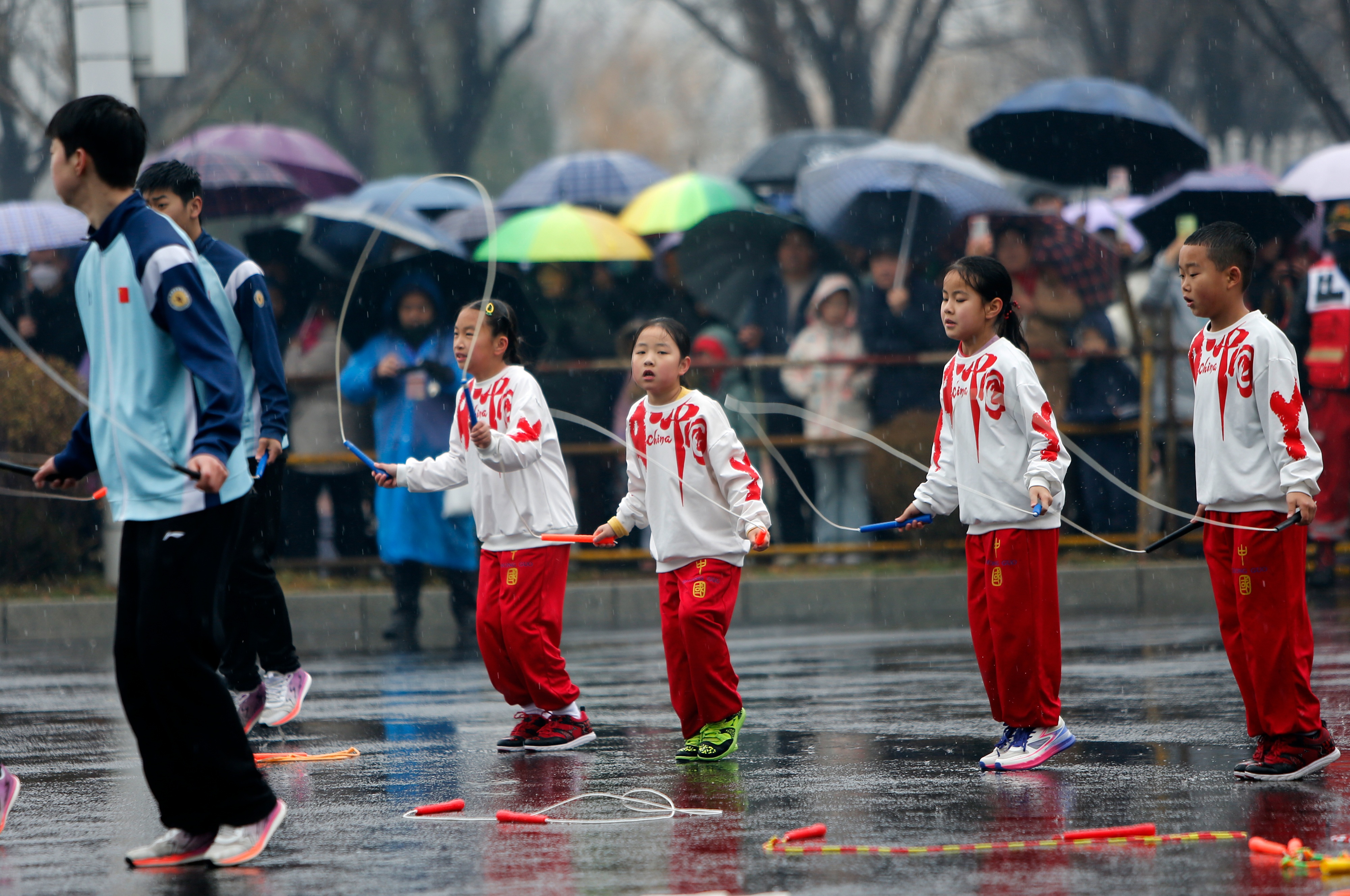 值得一提的是,此次扮玩队伍中出现了一只跳绳队。这支来自周村的队伍汇聚了顶尖跳绳高手,将竞技体育与舞台表演完美融合,表演内容丰富多元,涵盖广场绳舞的舒展优美、车轮跳花样的默契配合……队员们身姿矫健,动作行云流水,绳影翻飞间展现出极佳的协调性与创造力,让人看得眼花缭乱。