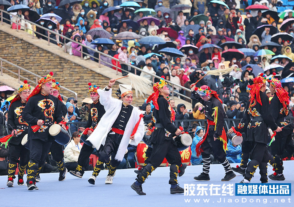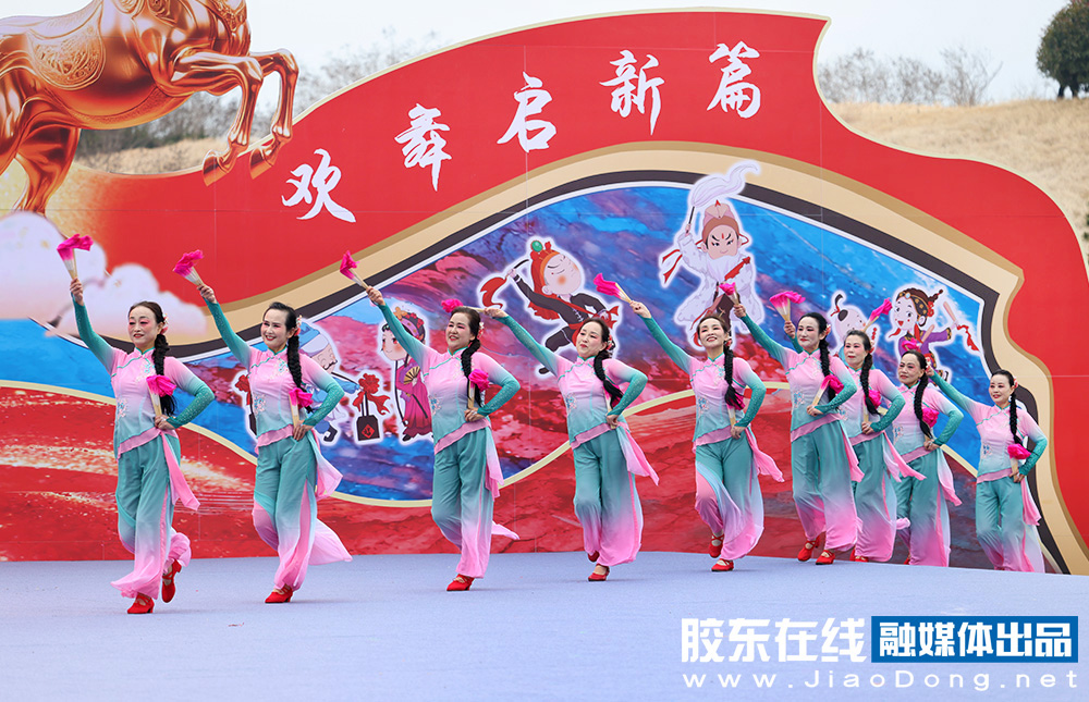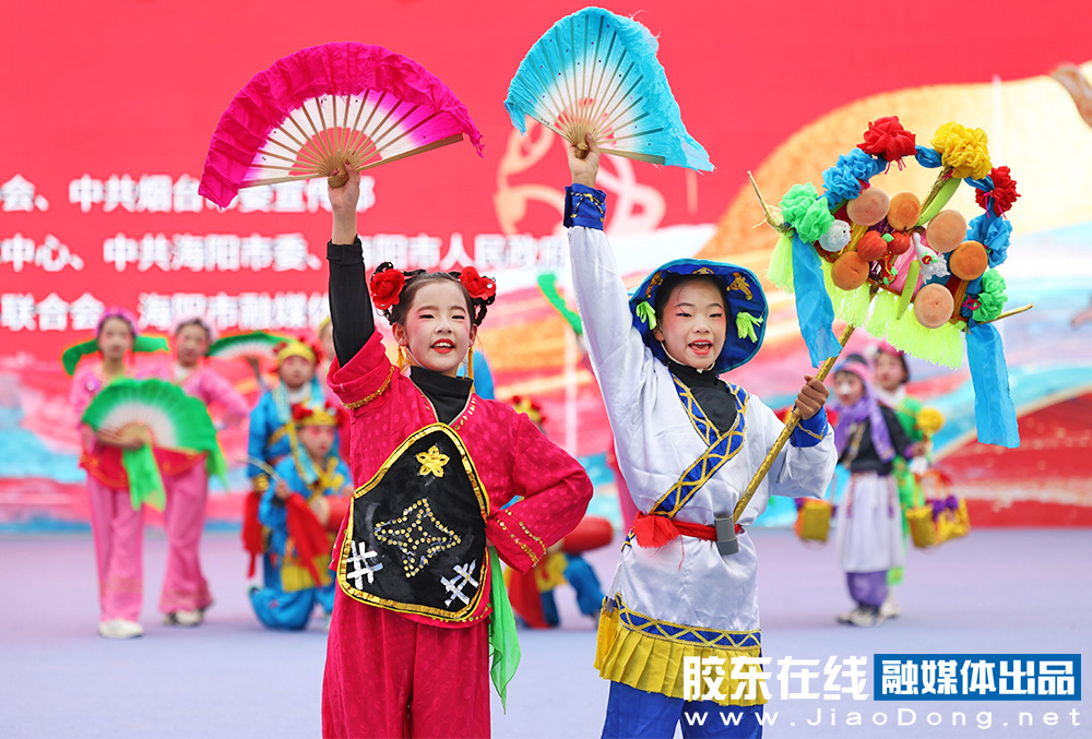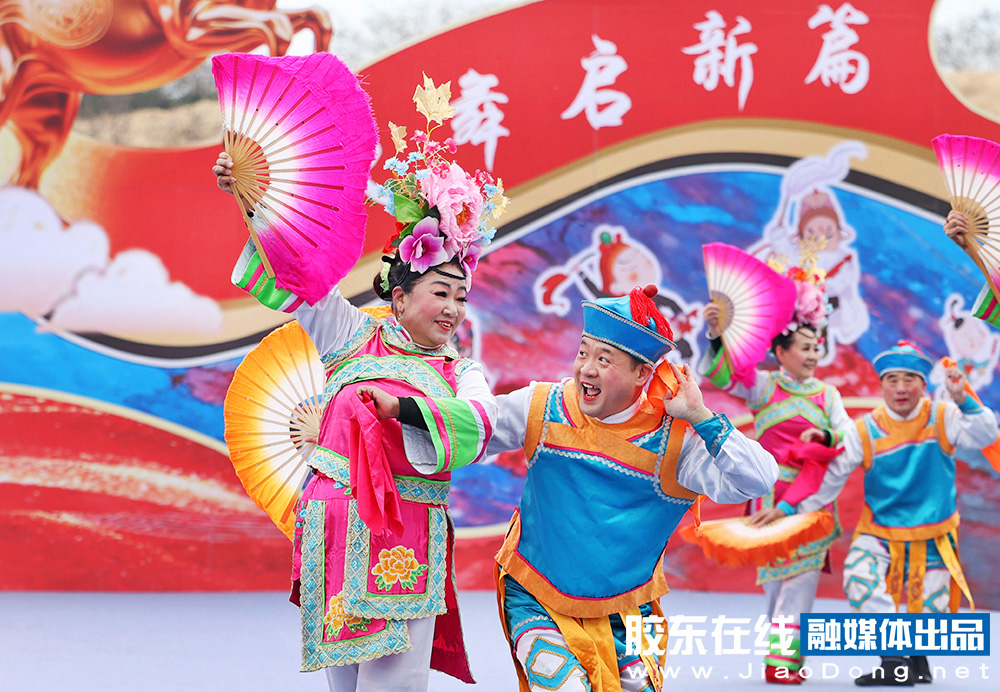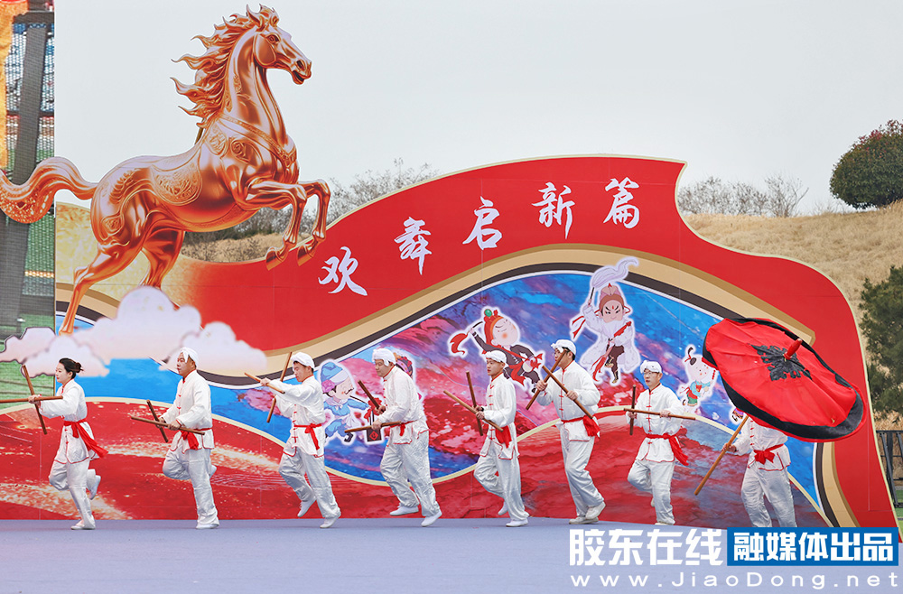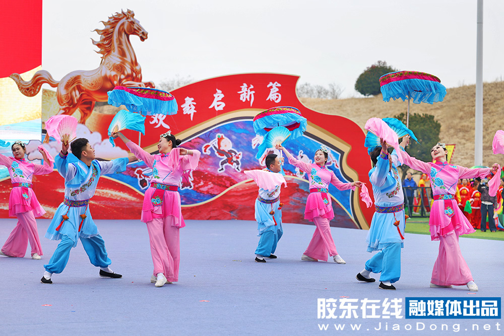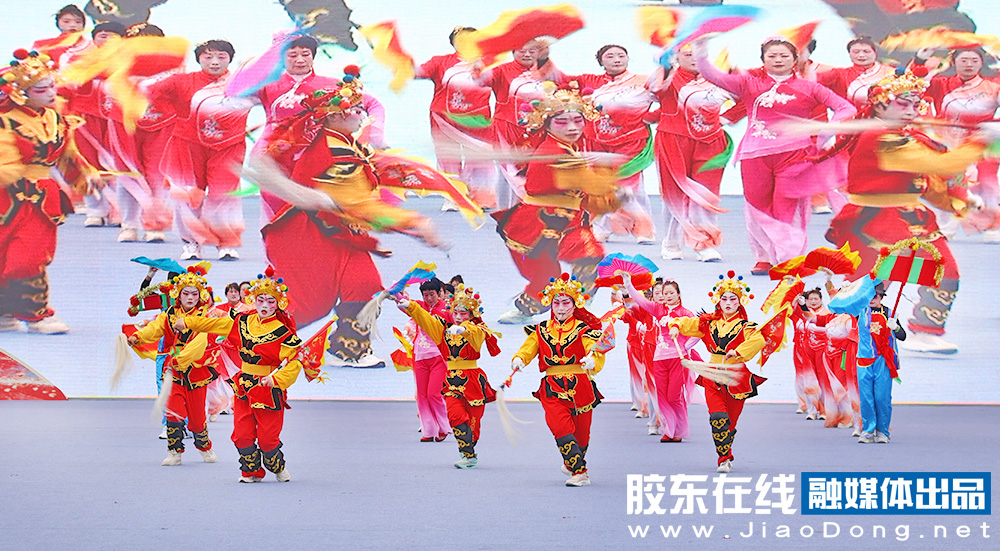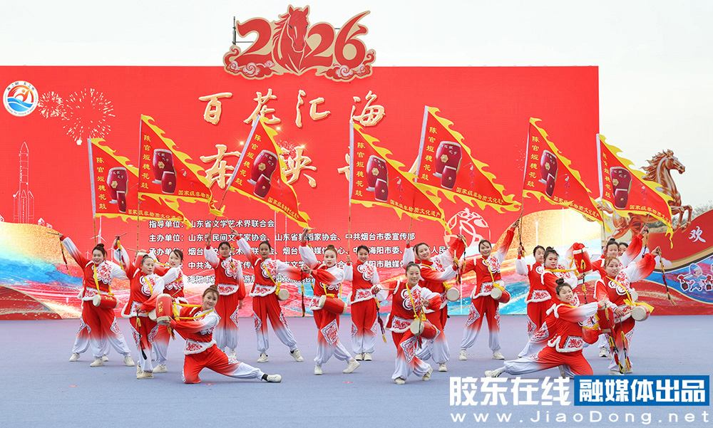 烟台融媒3月1日讯(胶东在线记者李刚摄影报道)秧歌竞秀,百花汇海。3月1日,2026“百花汇海”山东秧歌会在海阳市河清岛体育场精彩上演。省内外20支队伍、1000余名秧歌爱好者同台竞演,为市民和游客献上一场年味浓郁、喜庆热烈的高品质秧歌文化盛宴。