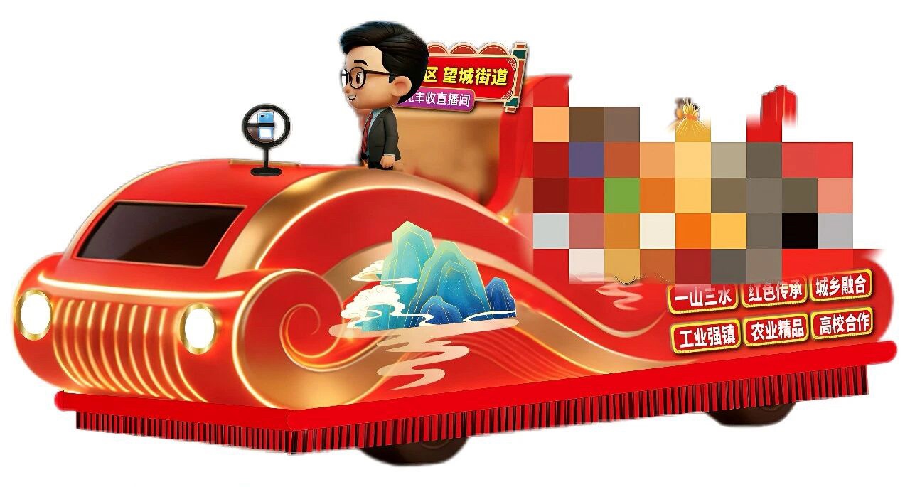 望城街道的两辆花车紧扣地域特色。其中一辆融合“一山三水”自然风光、“好八连”红色故事及“七星河七宝”文化,展现文旅农融合新貌。另一辆则以疾驰的高铁为造型,彰显经济开发区与城乡融合发展的速度与活力。