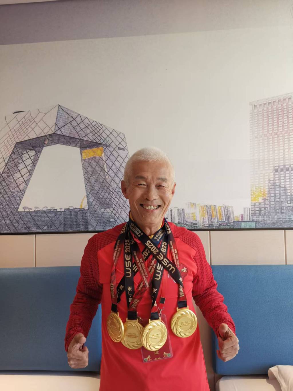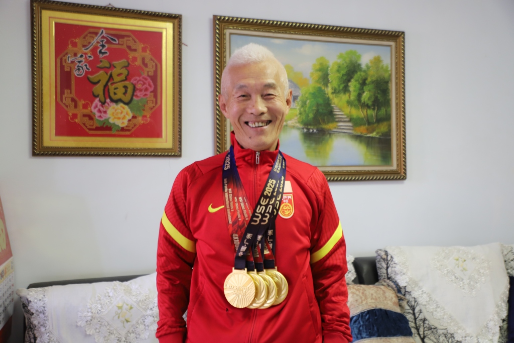 赛场之上,金辉更是一位驰骋的 “老将”,用速度书写着不老传奇。作为全国首位70岁以上百米跑进14秒的老人,他的运动之路从未停歇,近期在WSE公开赛亚太地区总决赛中的四枚金牌,更是他日复一日训练的硬核成果。当很多人认为“老了就该歇着,爱好、梦想都是年轻人的事”时,金辉却始终秉持着“不服老、不躺平”的态度,用行动打破世俗对老年人的刻板印象。