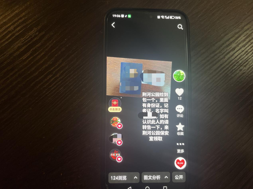 次日,荆河公园保安室队长张修斗通过网络平台发布失物招领视频,希望借助互联网寻找失主。与此同时,赵曰功按照身份证上的地址,专程前往相关小区寻人。因小区分南北区、门牌复杂,他联系该小区物业协助自己一起上门核实,没得到有效线索,他又拜托物业工作人员在业主群发布信息询问,几天过去,始终没有回音。