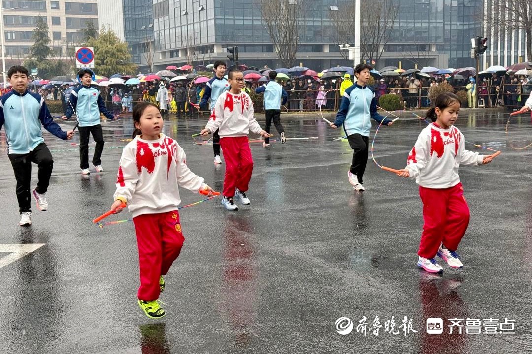 来自济南西关高跷队的“酸妮”踩着湿滑的木跷与观众互动,引发阵阵欢呼;淄博本土的二毛锣鼓队敲响粗犷豪放的鼓点,唤醒老淄博人的城市记忆;博山区向阳锣鼓队长者与幼童同台击鼓,演绎非遗传承的魅力;周村区跳绳队在世界冠军领衔下绳影翻飞,将竞技体育融入节庆舞台;高青海霞女子鼓舞队的乡村女性从田间地头走上巡游方阵,敲响新时代的自信强音……这场春雨浇不熄的民俗狂欢,正以最火热的方式,将马年的期盼与祝福,深深烙印在每个淄博人心中。