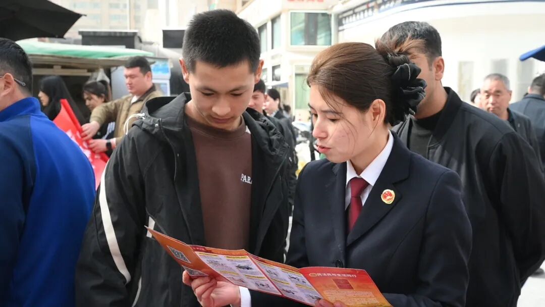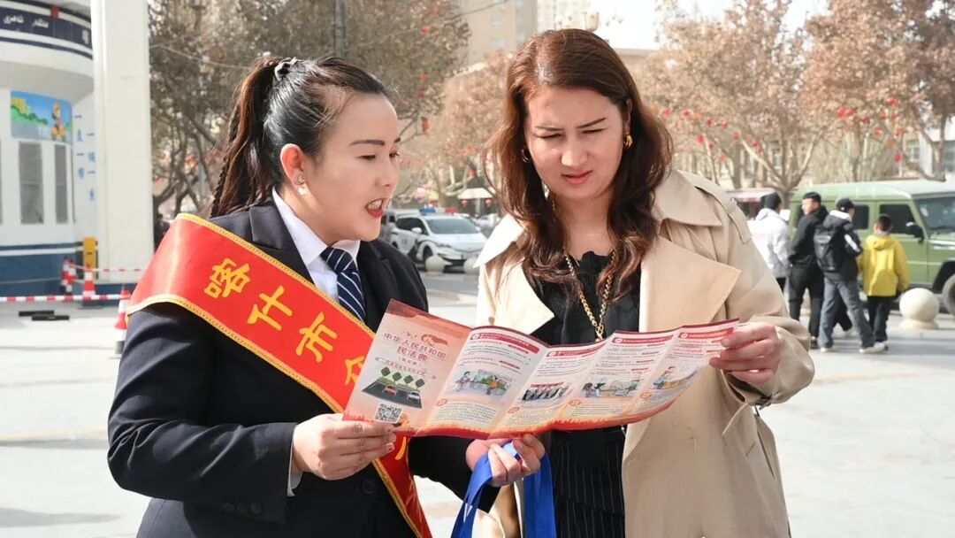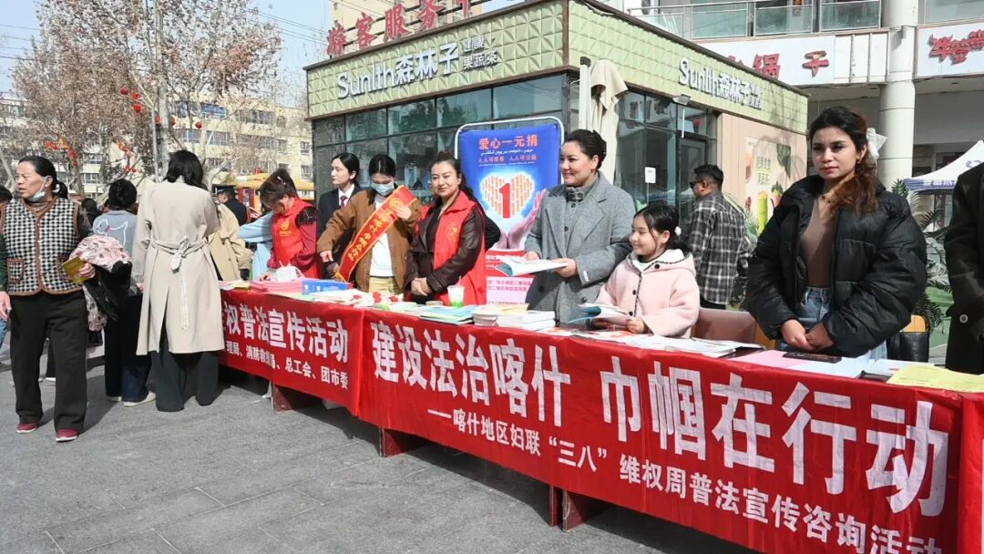 喀什地区妇联“三八”维权周普法宣传活动现场。喀什地区融媒体中心 实习记者权雅妮 摄
