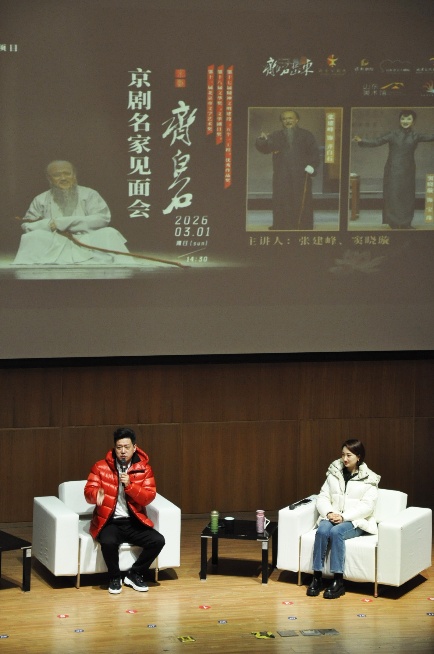 本次见面会特邀两位重量级京剧艺术家—— 中国戏剧梅花奖获得者、一级演员、北京京剧院领衔主演、奚派老生名家,新编京剧《齐白石》中齐白石先生的扮演者张建峰,以及一级演员、北京京剧院领衔主演、梅派青衣名家,剧中宝珠的扮演者窦晓璇来到现场。