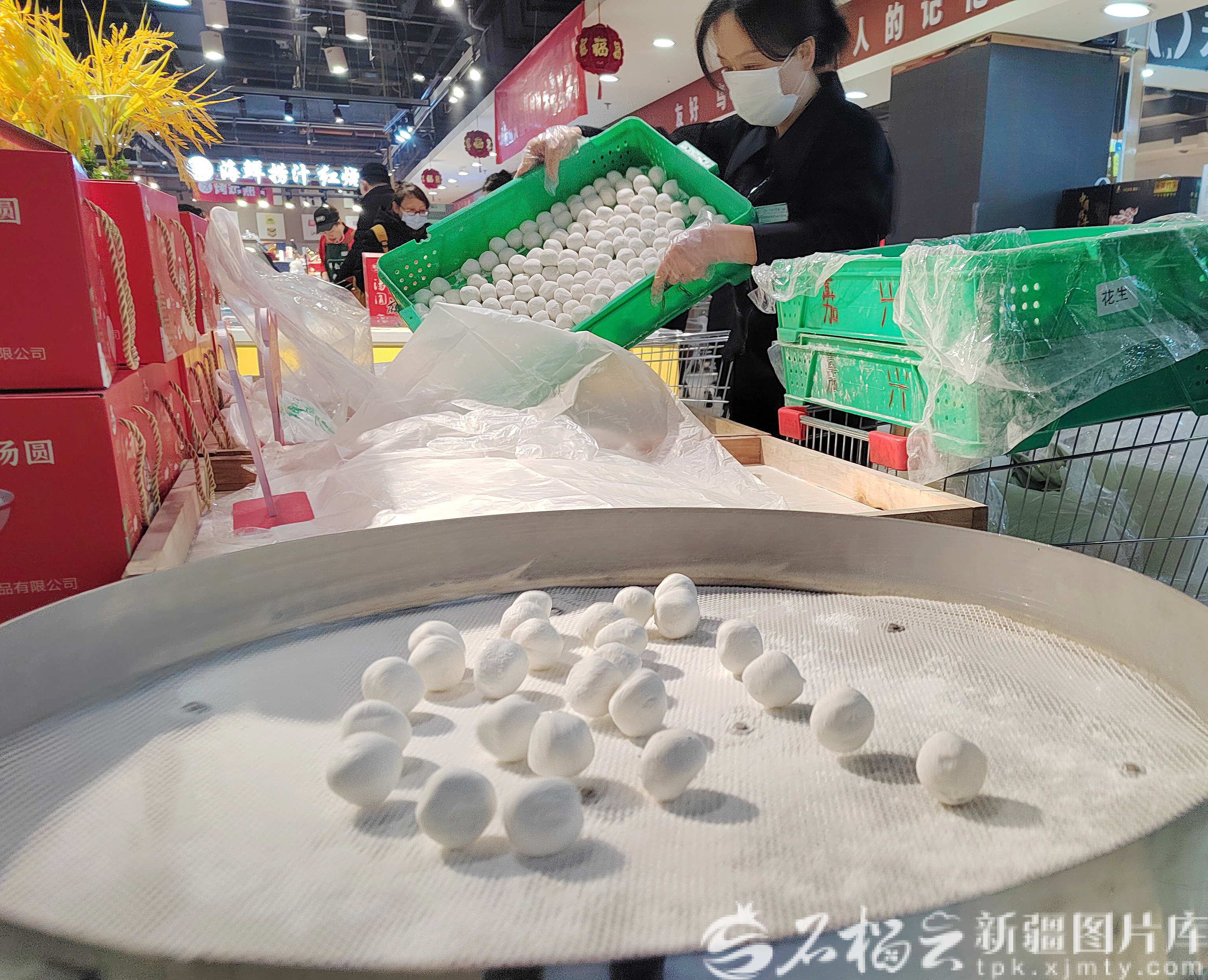 3月1日,工作人员在乌鲁木齐市友好超市友好商场店制作手工汤圆。