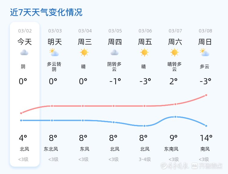 今日是3月2日,农历正月十四,淄博市迎来了一天的阴沉天气。目前气温为0.2℃,北风1级,空气湿度高达97%。各区天气情况总体稳定,以阴天为主,气温在0℃至4℃之间波动,市民出行需注意保暖和防滑。