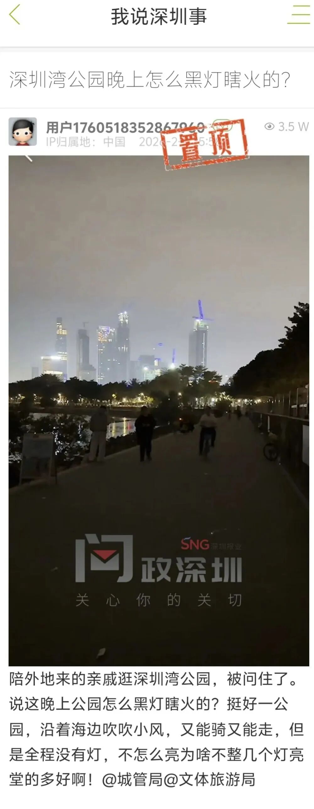 公园方面拒绝的原因也说得很清楚:不加装路灯,是因为过多高亮度灯具会破坏深圳湾区域的自然生态平衡,尤其会干扰候鸟越冬栖息和迁飞节律;而且公园在主要出入口及交通节点保留的基础照明设施,能满足市民夜间活动安全需要。