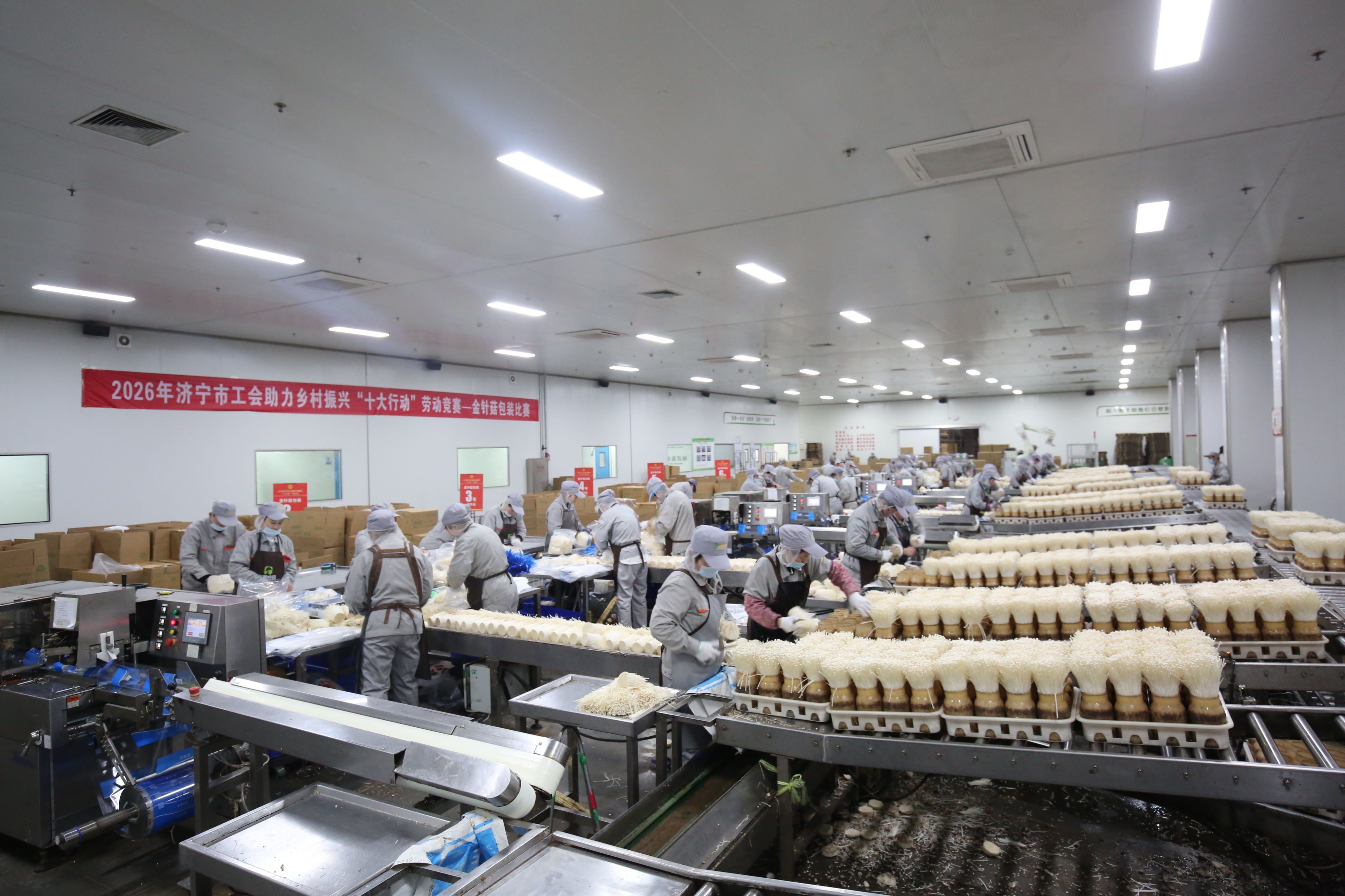 2月28日,济宁市总工会在邹城举行劳动竞赛,100余名食用菌企业的一线职工同台竞技,参加金针菇包装项目技能比武。邹城市食用菌年产量达45万吨,金针菇、杏鲍菇等产品出口海外,带动3万多名群众在家门口就业。(大众新闻记者吕光社通讯员吕卫锋)